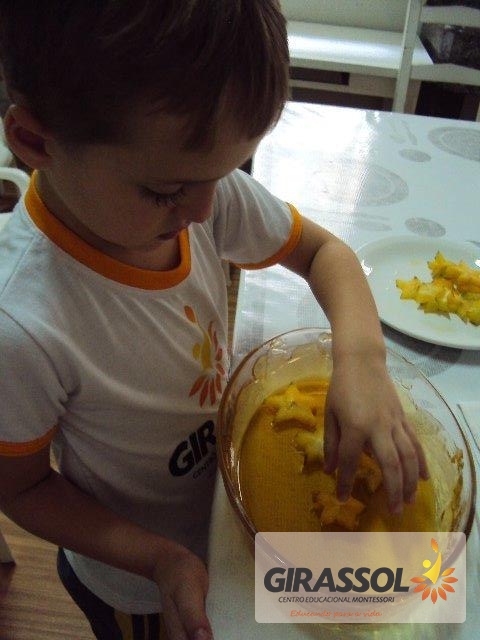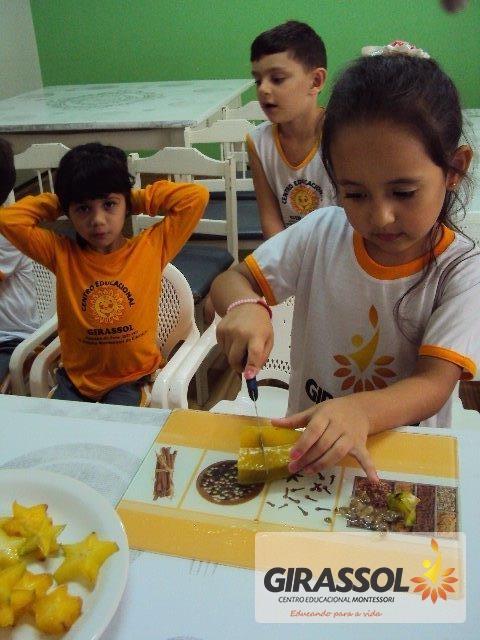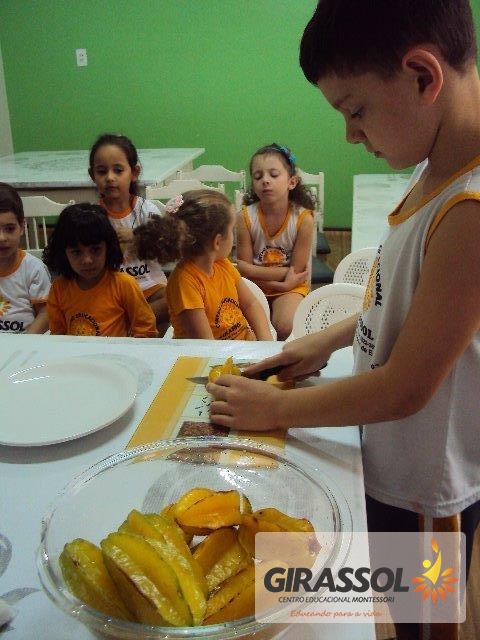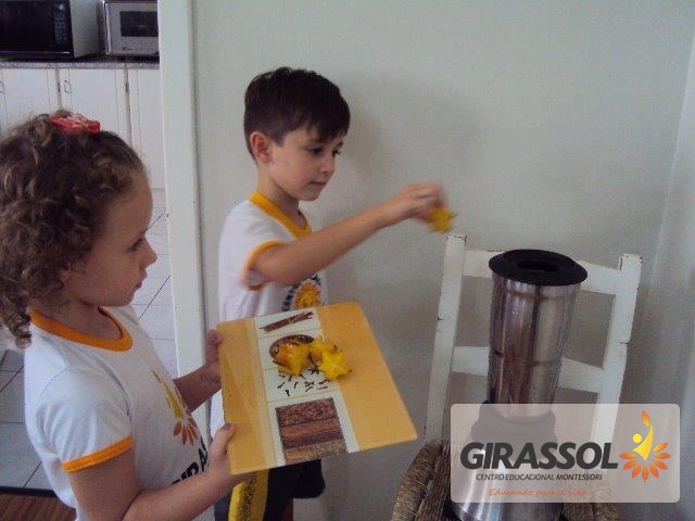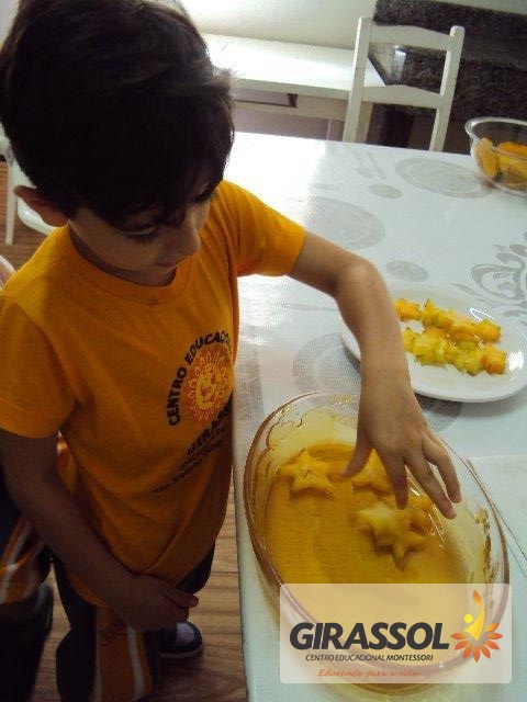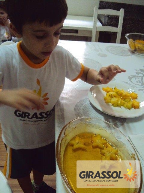A turma Rouxinol do Girassol - Centro Educacional Montessori estudou o Universo e nesse projeto aconteceram muitas descobertas. Com diversificadas atividades as crianças puderam conhecer os planetas, o sol, a lua, as estrelas, cometas e asteroides. Após atividades de observação do sistema solar, vídeos, registros em sala e atividades de linguagem e escrita, as professoras propuseram um lanche coletivo com a confecção de uma torta de carambolas, representando as estrelas. As crianças se divertiram e se deliciaram com a degustação!