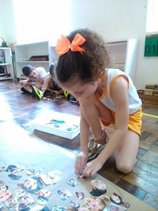 A turma Rouxinol do Girassol, estudando o continente Africano buscou em revistas figuras que representem a diversidade cultural do povo Brasileiro. Assim como várias outras etnias que já foram estudadas e seus continentes agora os alunos aprendem também a respeitar as diferenças e a verbalizar o que é mágoa, o que acontece quando falamos coisas que machucam os sentimentos e o coração. As crianças precisam desenvolver habilidades sociais uma delas é a empatia e sempre se colocar no lugar do outro para não provocar situações que em sala de aula e dentro da escola não tragam construções para a baixa estima.