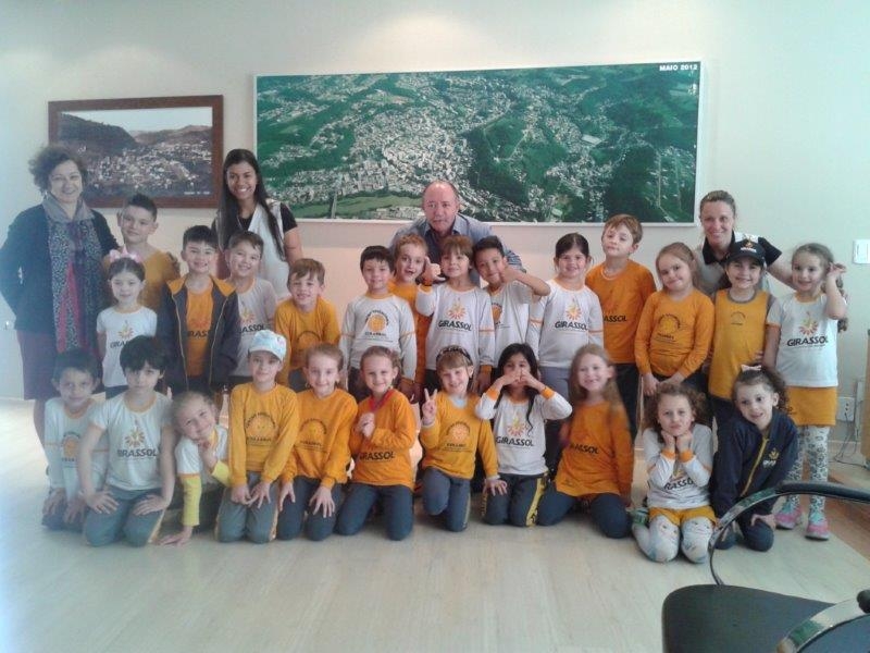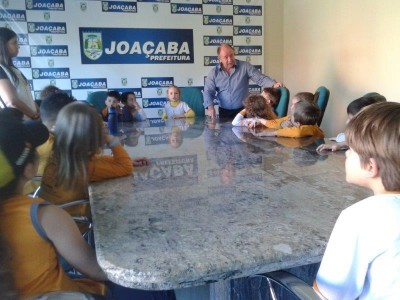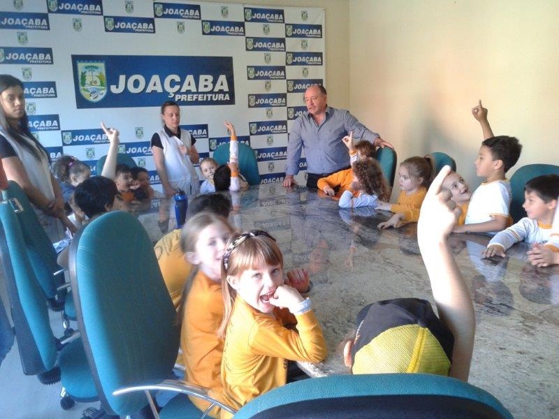 Neste mês de Agosto muitas atividades estão sendo desenvolvidas em nossa escola devido ao Centenário de Joaçaba, para que as crianças realmente conheçam a história de nossa cidade, pontos turísticos e outros aspectos importantes. Para uma aprendizagem mais significativa, a turma do 1º ano do ensino fundamental realizou uma visita de Estudos ao Gabinete do Prefeito Municipal, que os atendeu com muito carinho e respondeu diversos questionamentos dos alunos. Agradecemos a receptividade do Prefeito Dioclécio Ragnini e da Secretária de Educação Marilena Detoni.
