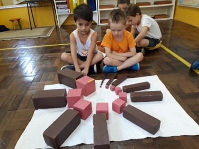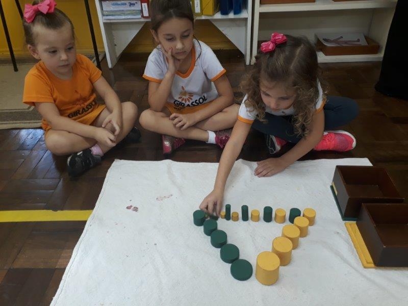 Em curso e formação na Pós Graduação em Florianópolis nossa equipe aprendeu como fazer variações e extensões dos Materiais Sensoriais Montessori e outros de várias áreas de conhecimentos diferentes. Os materiais sensoriais encantam e tem várias características que permitem um aprendizado para a mente matemática. As variações são realizadas para crianças que já dominam vocabulário, conceitos e ritual de apresentação, assim podem exercitar sua criatividade utilizando outros materiais para compor a aprendizagem. A turma Rouxinol está aprimorando suas habilidades!