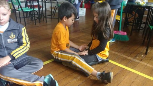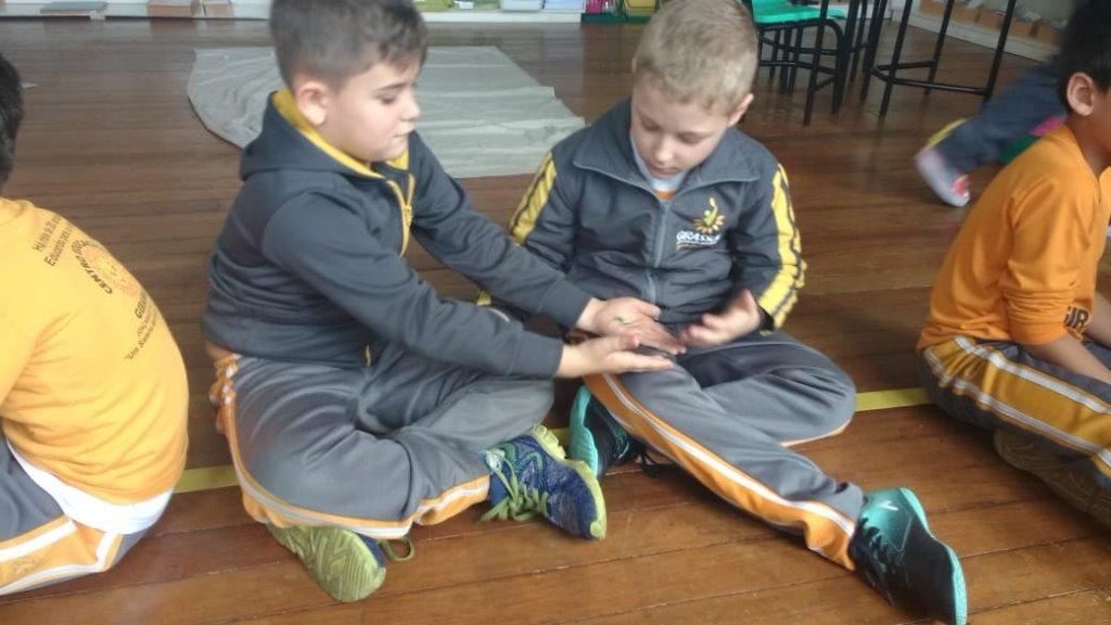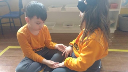 A lição do silêncio pode ser realizada com objetos ou utilizando outras estratégias, nesta semana os pequenos puderam realizar este momento oferecendo ao seu colega uma massagem nas mãos, utilizando creme e muito carinho.