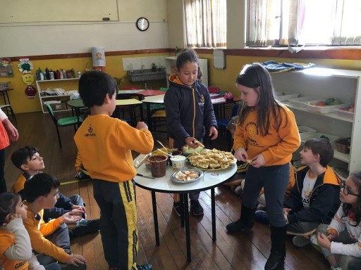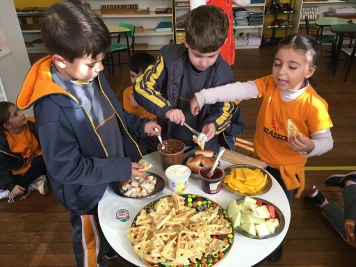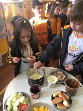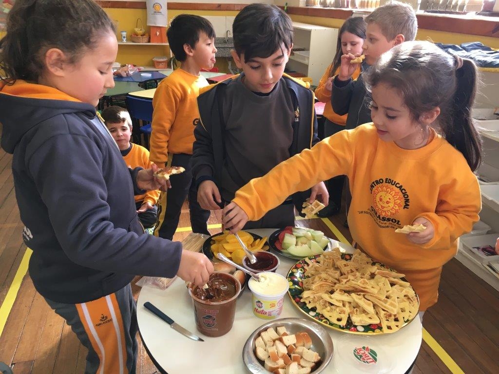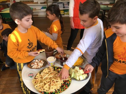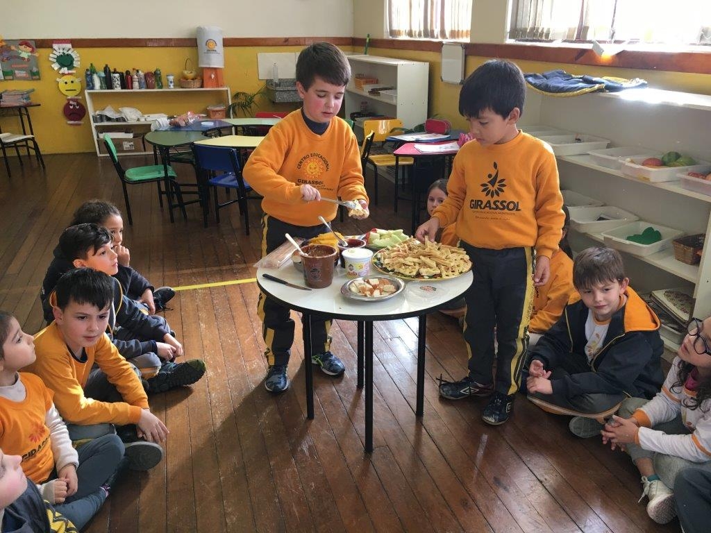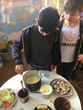 A turma do 1º ano continua viajando pelos continentes do planeta Terra, desta vez conheceram a Europa e realizaram um lanche coletivo com duas comidas típicas: