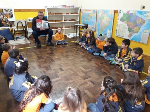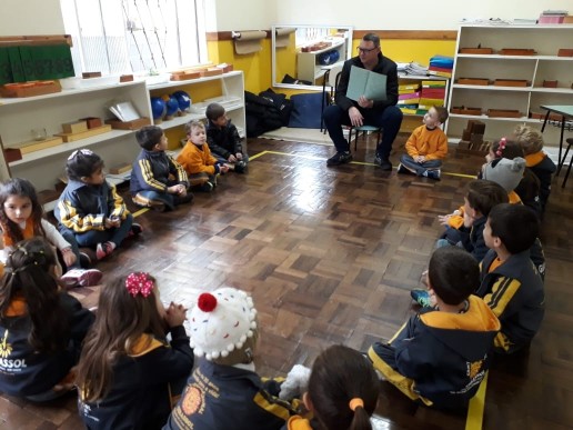 Dentro do desenvolvimento humano os pais tem um papel fundamental em tornar a pequena criança um "ser humano" capaz de ter habilidade tanto cognitivas quanto habilidades sociais e emocionais. Tanto pai como mamãe, tem um papel fundamental na educação tos filhos. Na fase dos 3 aos 6 anos a figura paterna traz uma construção da personalidade da criança traços muito fortes. Sabedores do quanto a figura paterna é importante, nossa casa escola está desenvolvendo este lindo projeto, que só vem enriquecer o trabalho feito pelas professoras. Desta vez quem veio fazer parte do projeto Papai lê para mim, foi o papai do Davi da turma Rouxinol. Nosso pequeno juntamente com seus colegas agradecem o carinho e dedicação neste lindo momento.