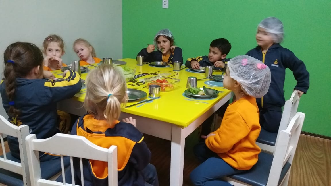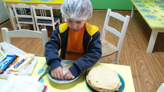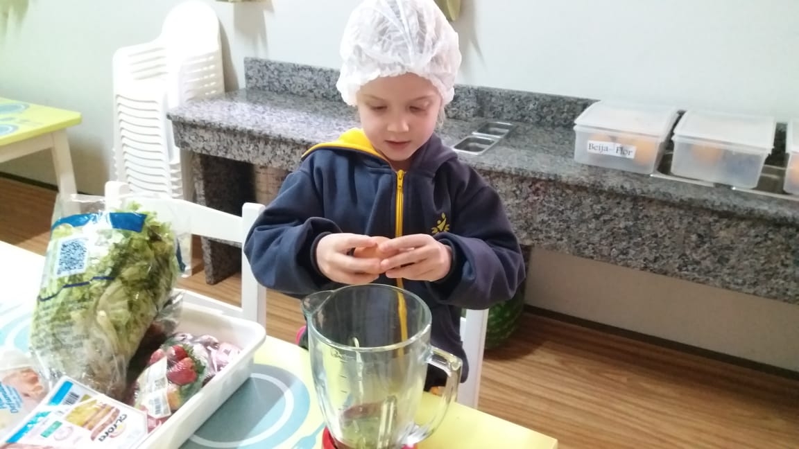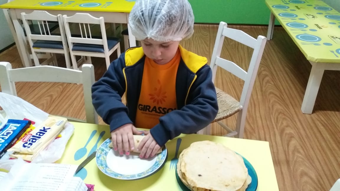 Em nossa escola, a linguagem tem uma ótica diferenciada. O processo de estimulação para alfabetização permeia os cinco sentidos. A prática de fazer receitas é um estímulo à linguagem. Faz parte do currículo e das estratégias de ensino, analisar as receitas e repartir a turma em equipes que auxiliam o processo de confecção da receita. A turma Quero-Quero, respeitando os preceitos Montessorianos, realizaram uma receita deliciosa de panqueca, além de ser um momento divertido, traz muita aprendizagem para nossos pequenos.