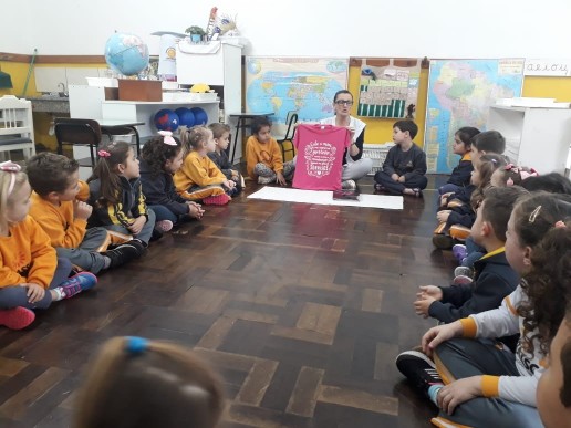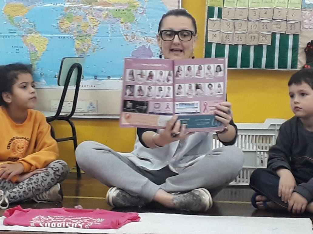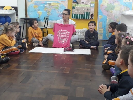 No mês de Outubro as crianças acabam participando de atividades relacionadas à Campanha contra o Câncer de Mama em todo País, com propagandas, enfeites pela cidade, camisetas das mamães, evento na escola e outros, mas é muito importante que eles saibam o porquê de toda essa movimentação. Nas aulas de Princípios e Valores esse foi um assunto que aguçou a curiosidade dos alunos da Turma Quero-Quero e de outras turmas, e a professora Ruth trouxe algumas informações e significados importantes dessa data onde os pequenos pudessem compreender. As crianças ajudam a levar para casa as informações e podem desde já se preocupar com a saúde.