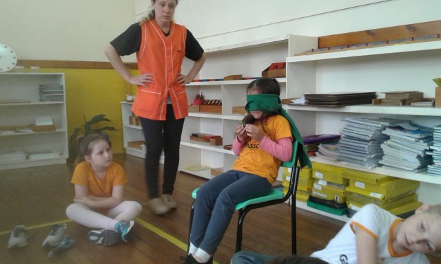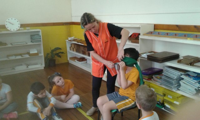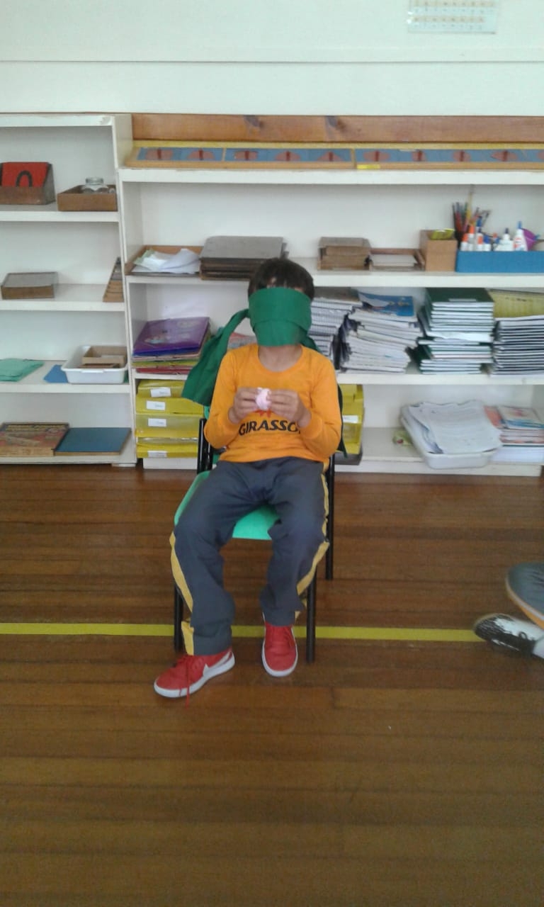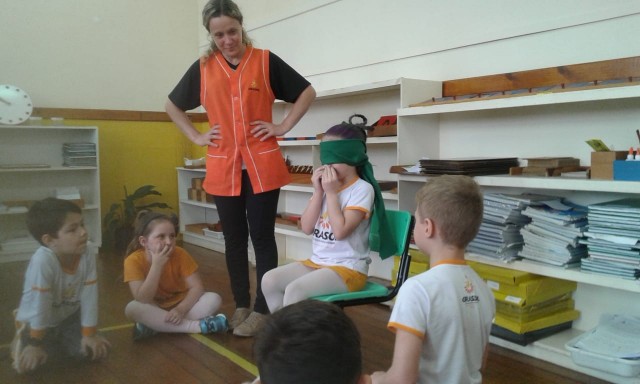 A turma do 1º ano estudou sobre o corpo humano. Os sentidos foi um dos assuntos explorados pela turma, tema este que causa muita curiosidade entre os pequenos. As professoras realizaram em sala um Jogo dos Sentidos, onde os alunos eram vendados e utilizando um dos cinco sentidos: audição, paladar, tato, olfato e visão, deveriam adivinhar o que estava na sua frente ou lhe era oferecido. Momentos de muitas risadas e também de aprendizado!