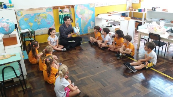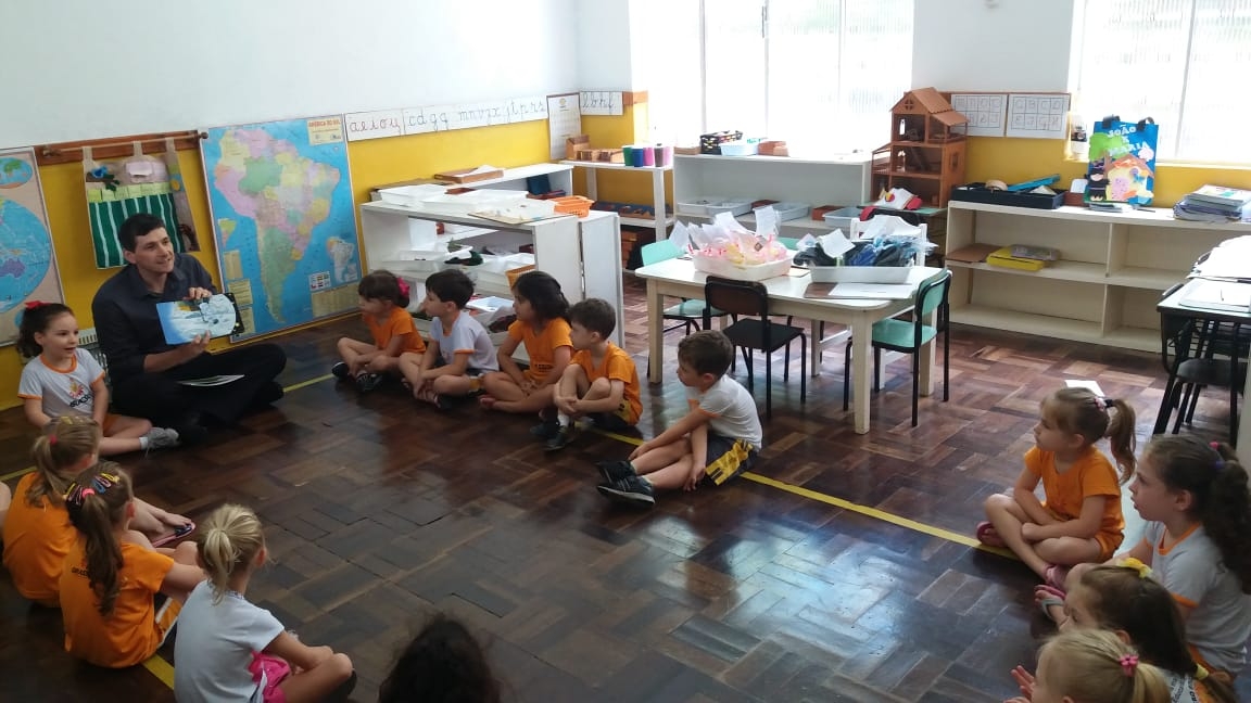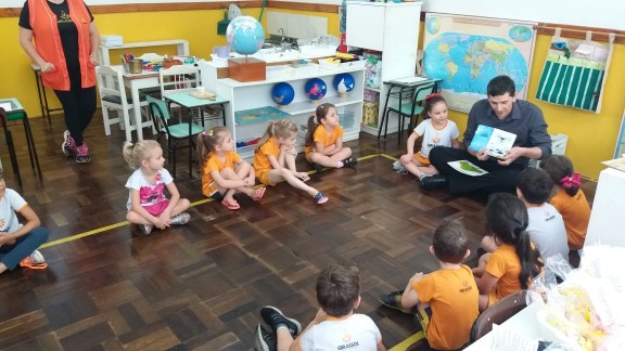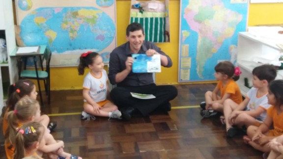 Nossa escola realizou um lindo trabalho em parceria com as famílias. Este ano as turmas de 3 a 6 anos realizaram um projeto lindo que trouxe o papai para dentro da sala de aula. Desta vez o papai da amiga Maitê veio contar uma linda história para a turma Quero-Quero. Além de dar o exemplo de bons hábitos com a leitura, a presença do pai cria na memórias das crianças momentos de alegria e felicidade, além de orgulho e admiração.