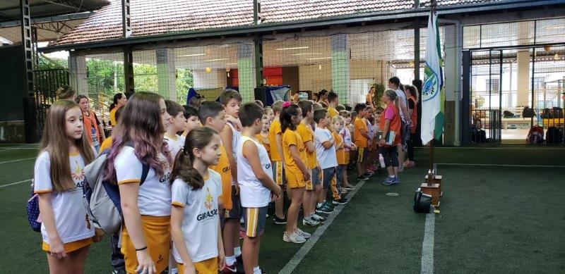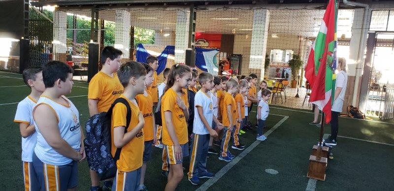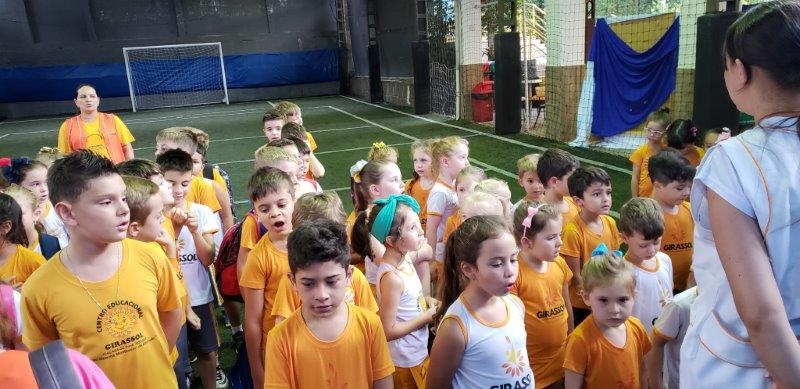 Os alunos do Girassol - Centro Educacional Montessori iniciam as atividades toda semana cantando o Hino Nacional Brasileiro, o Hino de Joaçaba e o Hino da Escola com o objetivo de trabalhar a cidadania, o amor ao próximo, à escola e à nossa Pátria. São momentos importantes para refletir e conhecer os Hinos. Essa iniciativa é realizada com o propósito de trabalhar a boa formação educacional e promover a participação e reflexão sobre a cidadania e amor à Pátria. Os alunos também são orientados e incentivados a conhecerem e cantarem a letra correta do Hino Nacional Brasileiro, compreendendo o que estão recitando. Ações como essa contribuem na formação de cidadãos!