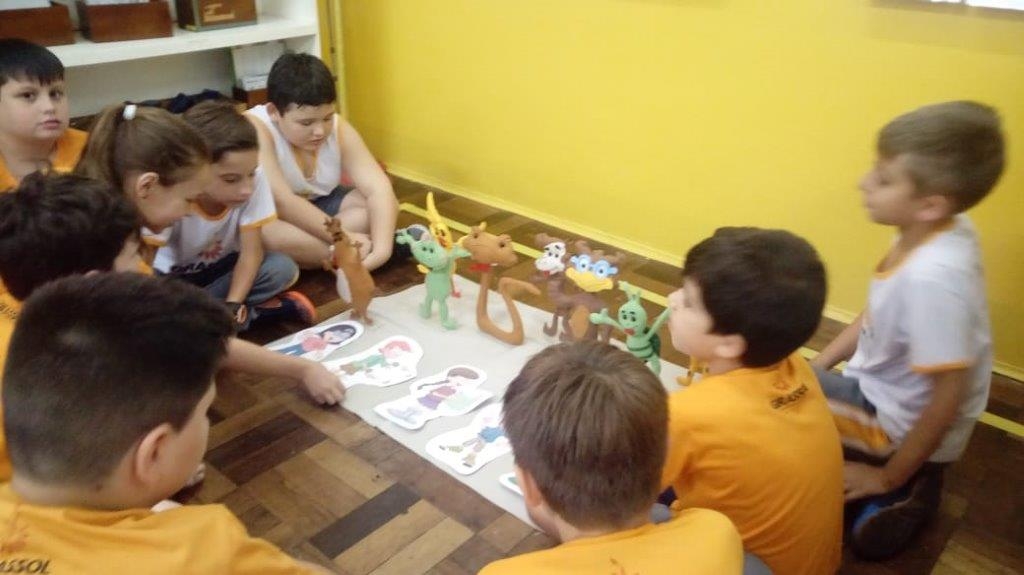 No dia 25 de fevereiro a turma agrupada do 4º e 5º ano do Ensino Fundamental receberam uma surpresa muito especial em sala: os personagens da Floresta Viva da Escola da Inteligência.
