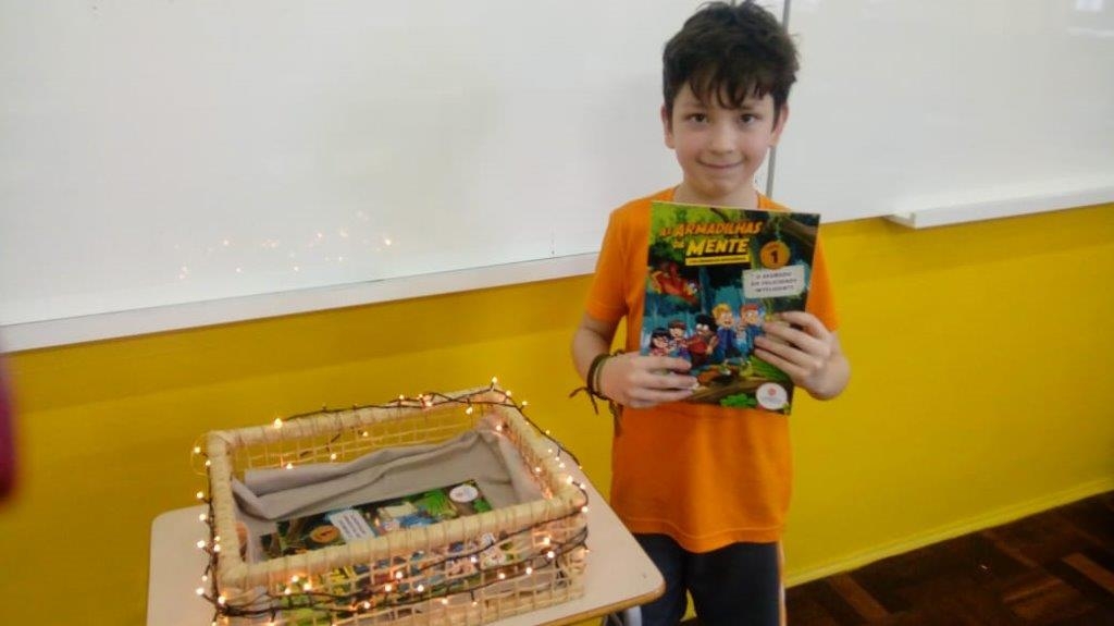 Em grupo as crianças conversaram sobre as características saudáveis e não saudáveis de cada personagem e conheceram os novos integrantes. dos livros A cidade da memória e Armadilhas da mente. Após a roda de conversa, receberam com muito carinho o livro a ser trabalhado neste primeiro semestre.