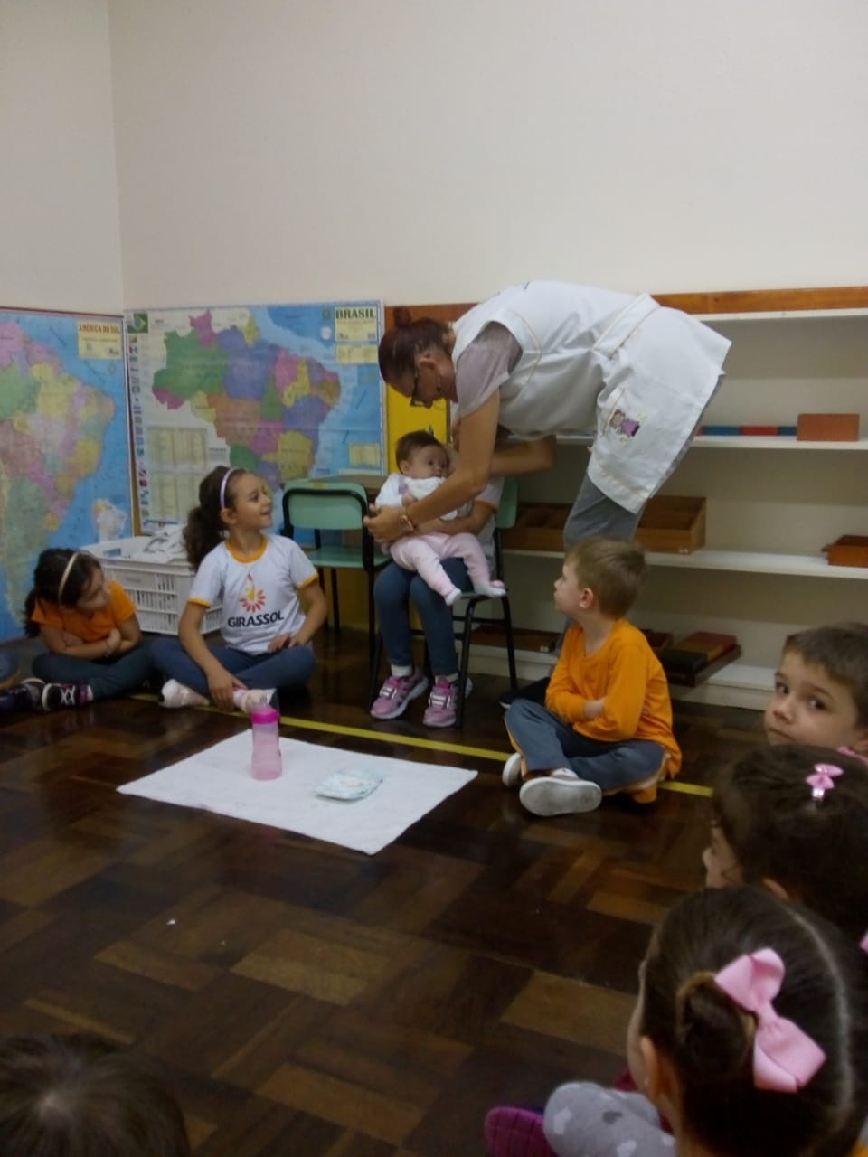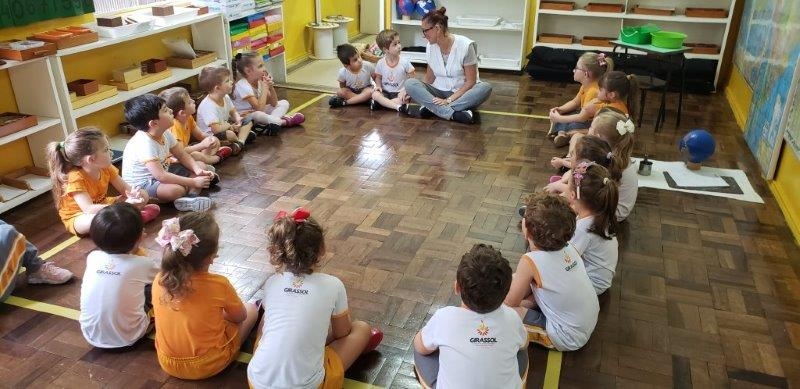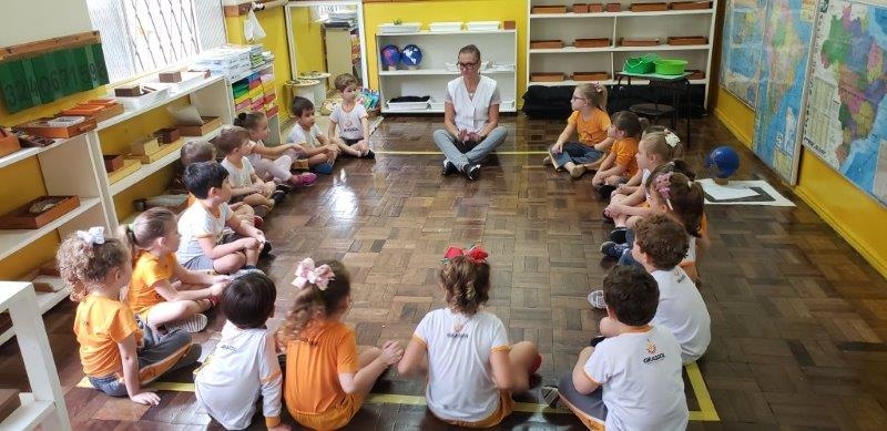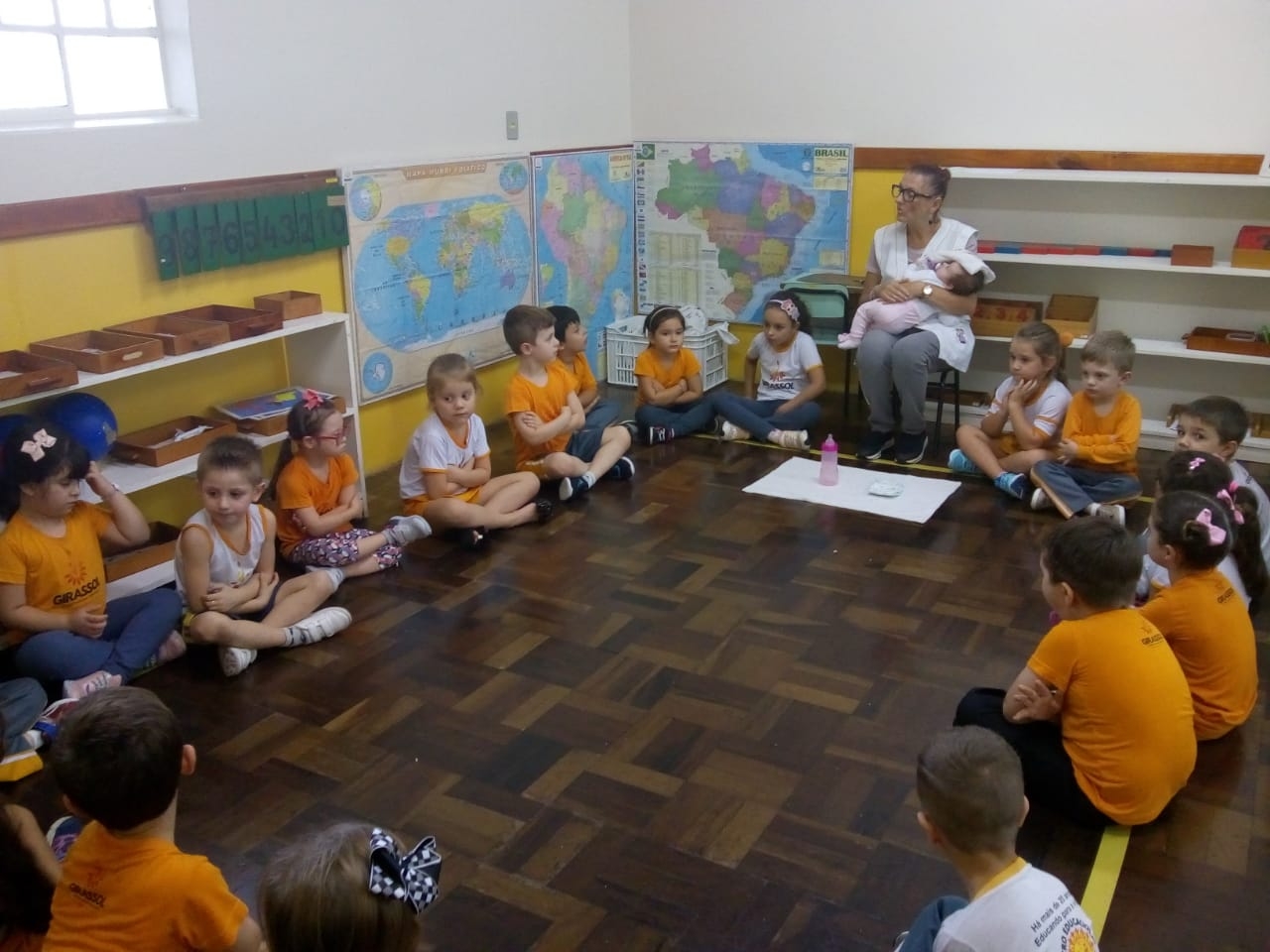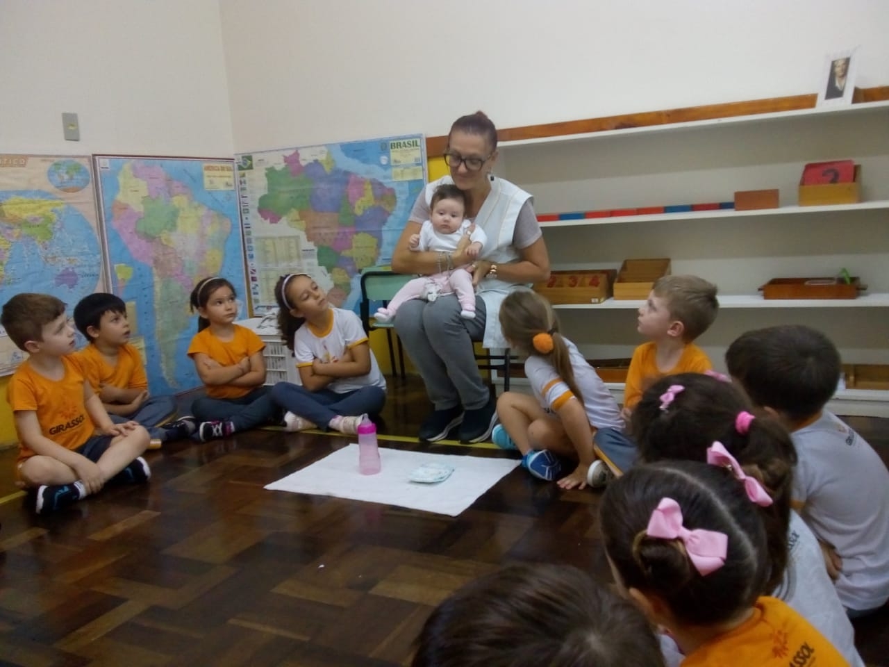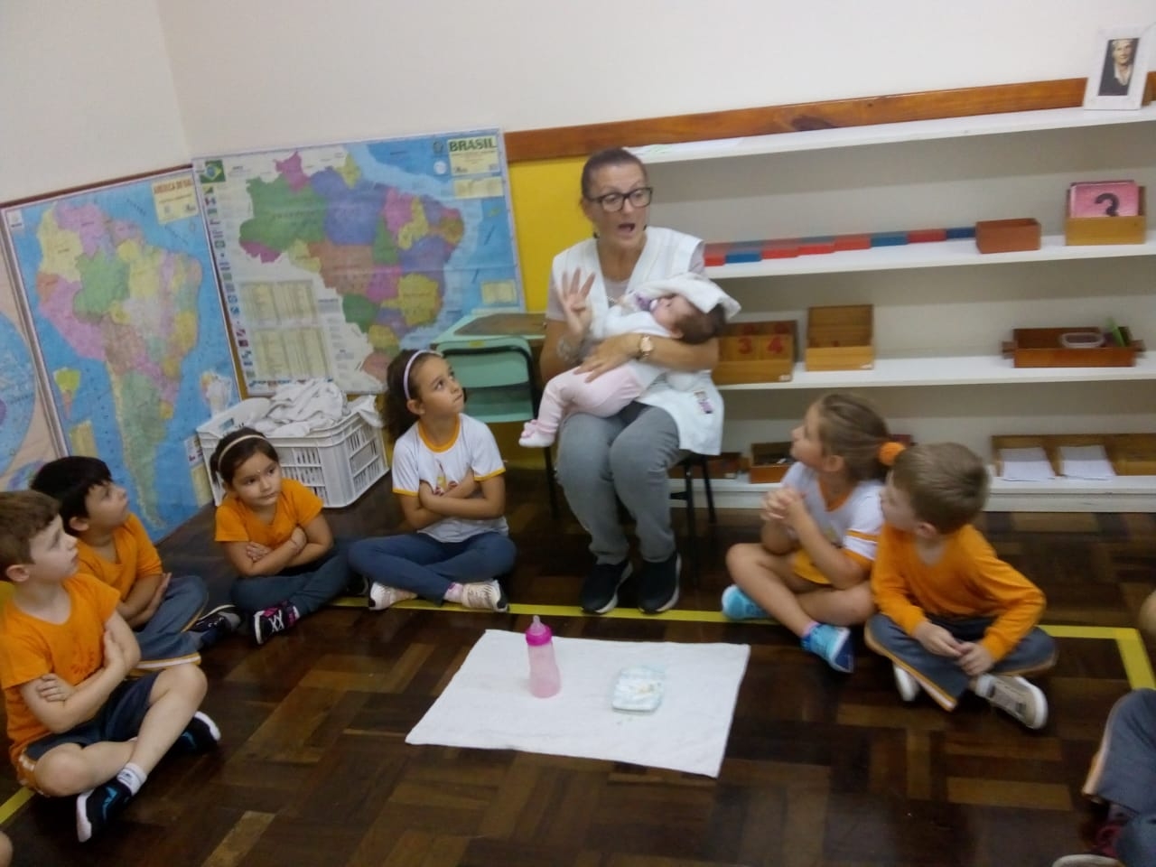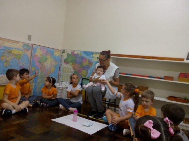 Uma das atividades de nossa escola com as turmas de alfabetização e agrupada do 1º ano são as aulas de Princípios e Valores, onde a professora Ruth trabalha com as crianças as questões relacionadas à comportamento e demandas de cada turma. Várias são as estratégias utilizadas, com alongamento, dinâmicas, histórias, exercício do carinho, músicas, conversas, exercícios na linha e outros. Nossas crianças participam ativamente das atividades e se encantam a cada aula com as dinâmicas propostas. Uma delas, foi a visita de nossa aluna Martina do berçário, que esteve na sala para que as crianças pudessem observar as características de um bebê e se perceber como criança que já cresceu. Essas vivências auxiliam nossas crianças a compreender melhor o outro e a si mesmo!