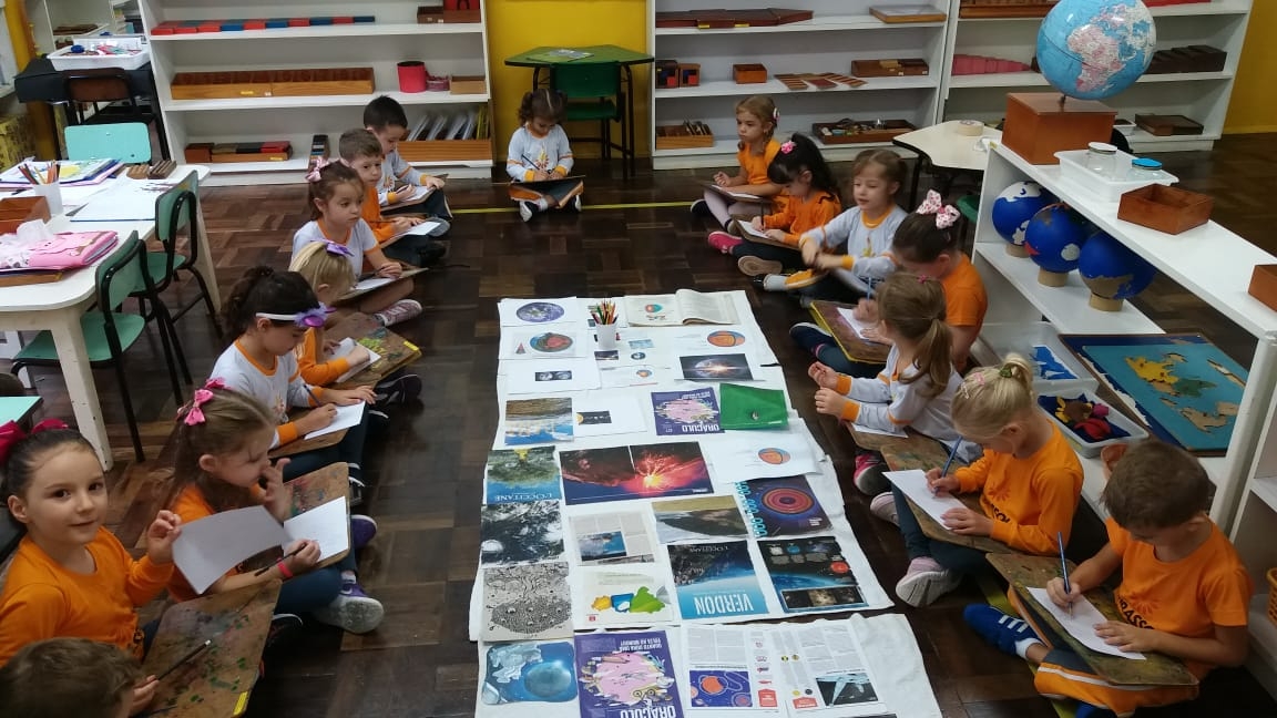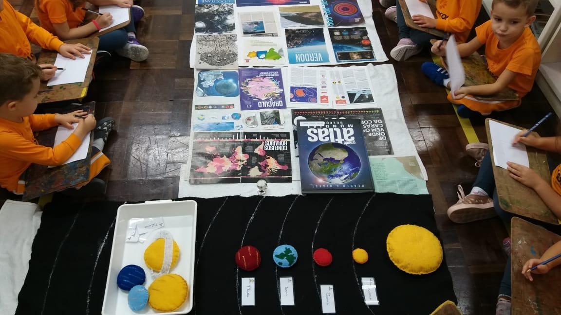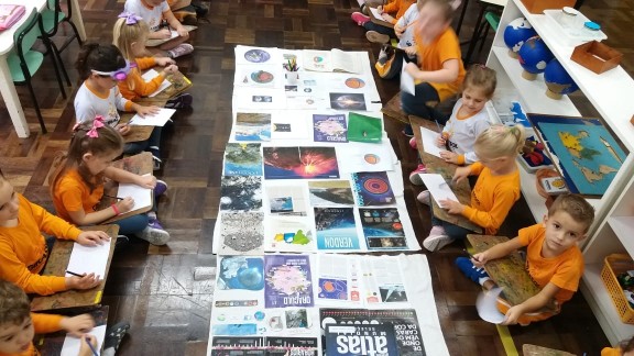 As crianças de 4 e 5 anos tem um encantamento natural pelos planetas e estrelas. Nesta fase do desenvolvimento eles ficam encantados com tantas descobertas e adoram ter o conhecimento científico sobre o que é desconhecido. A professora da turma Quero-Quero estudando os planetas e suas características solicitou que as crianças trouxessem imagens fotos e material para enriquecer o trabalho em sala de aula. Além de lindo o trabalho encantou nossos pequenos que com curiosidade fizeram lindamente a atividade.