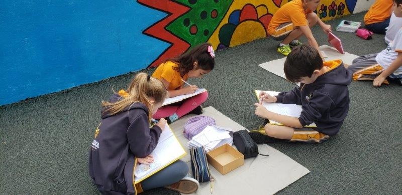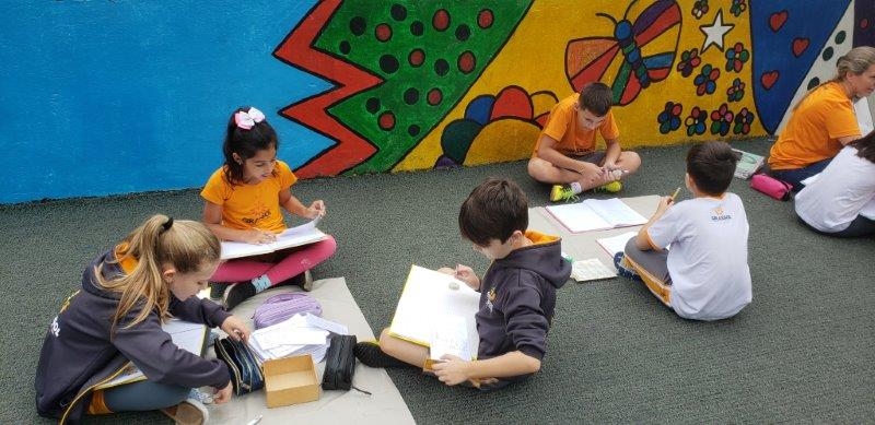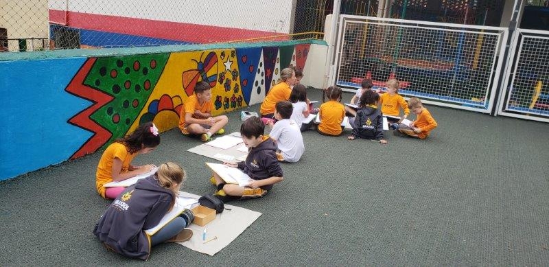 crianças fora da sala de aula para exercitar sua capacidade de concentração e