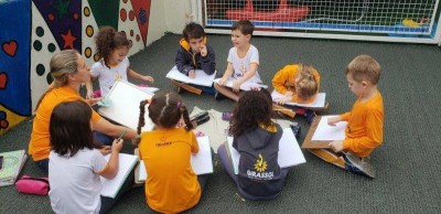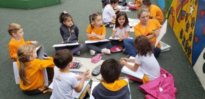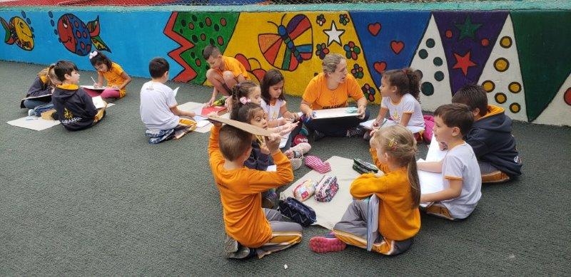 Crianças e professores capazes de normalização e aprendizado fora da sala