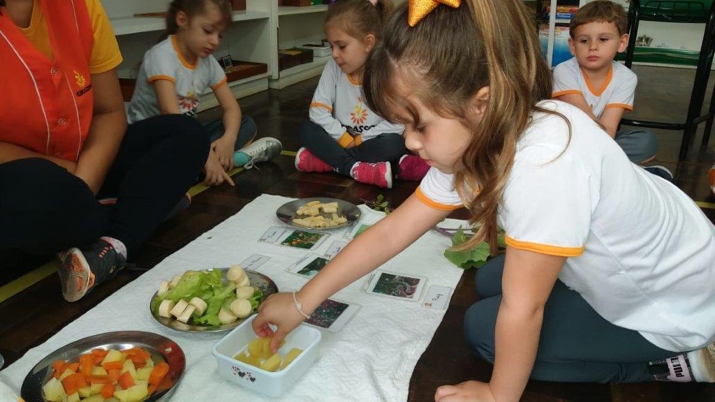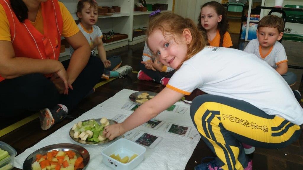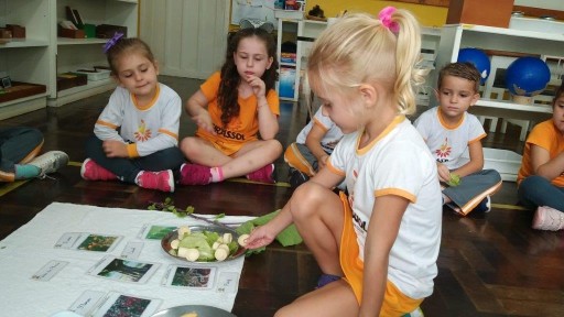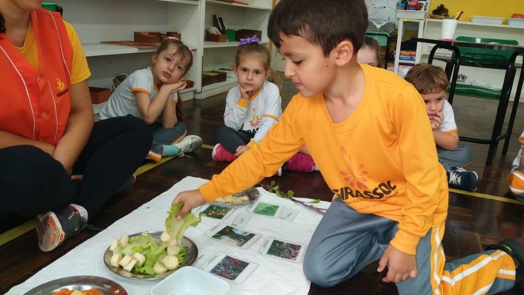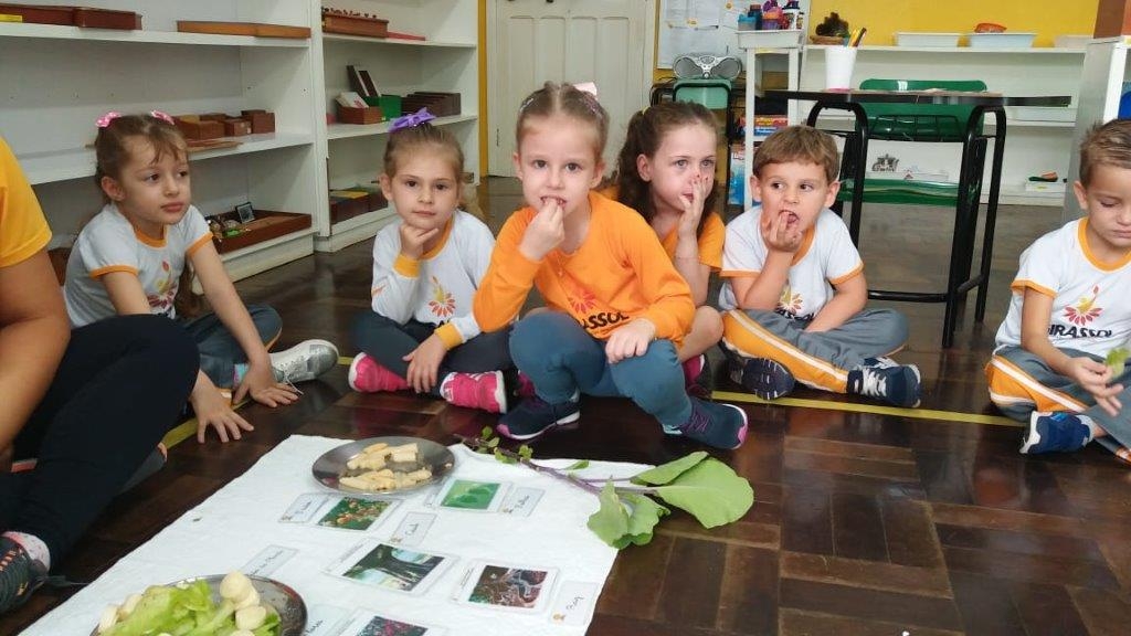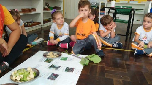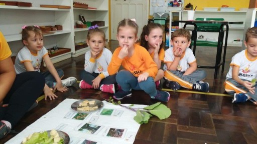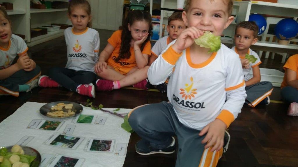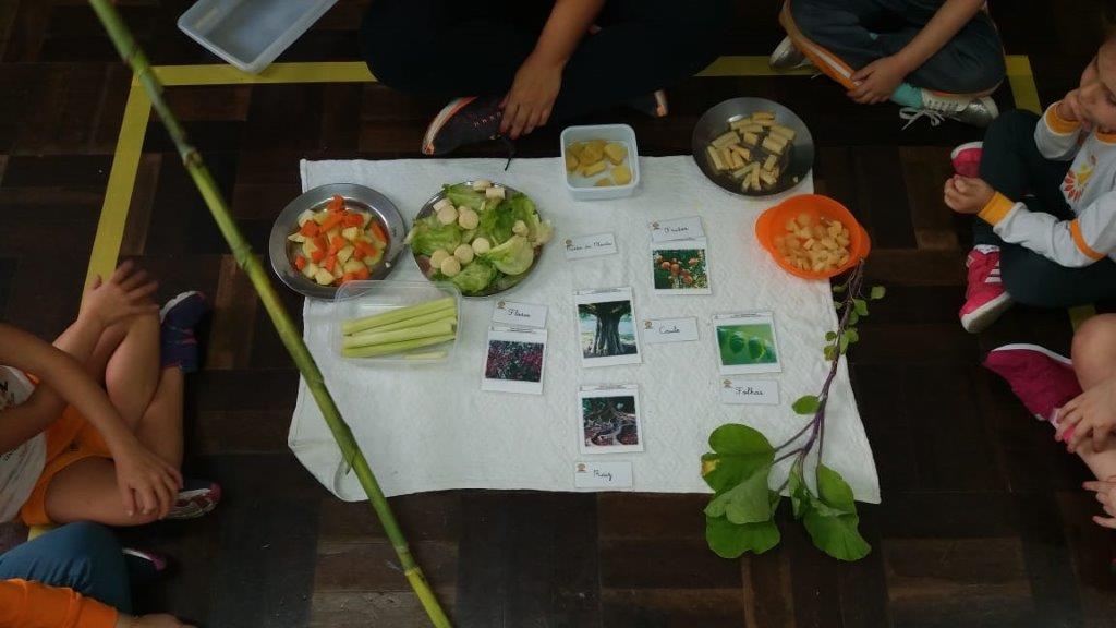 Dentro do currículo Montessori, um dos mais belos materiais é o de ciências. As crianças aprendem com um lindo enxoval e com atividades práticas como se relacionar com a fauna e a flora de nosso planeta, de maneira respeitosa. Nas aulas de educação ambiental nossos pequenos da turma Quero-Quero do período matutino degustaram partes da planta para que possam compreender que várias partes servem de alimento para os seres vivos e são preparados de muitas maneiras, estimulando assim o paladar de nossas crianças para que formem o hábito de uma boa alimentação.