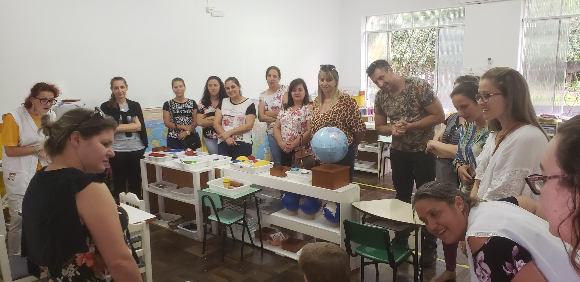 Neste semestre o Girassol - Centro Educacional Montessori está recebendo  a visita de educadores do Município de Arroio Trinta  para conhecer melhor o método Montessori, assim como suas práticas e filosofia para um possível trabalho no Município com a Filosofia Montessori. Nestas visitas os professores  participam de observações do ambiente e repasse de aspectos importantes sobre o Método. Para o grupo são momentos importantes de aprendizado e para a direção da escola uma grande oportunidade de mostrar o trabalho realizado e tirar dúvidas que surgem. O grupo está sendo atendido pela Consultora Montessori Ruth Specht que com muito carinho apresenta a escola e suas práticas.