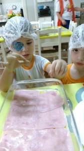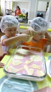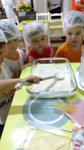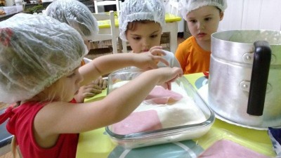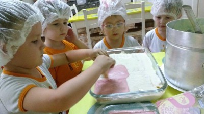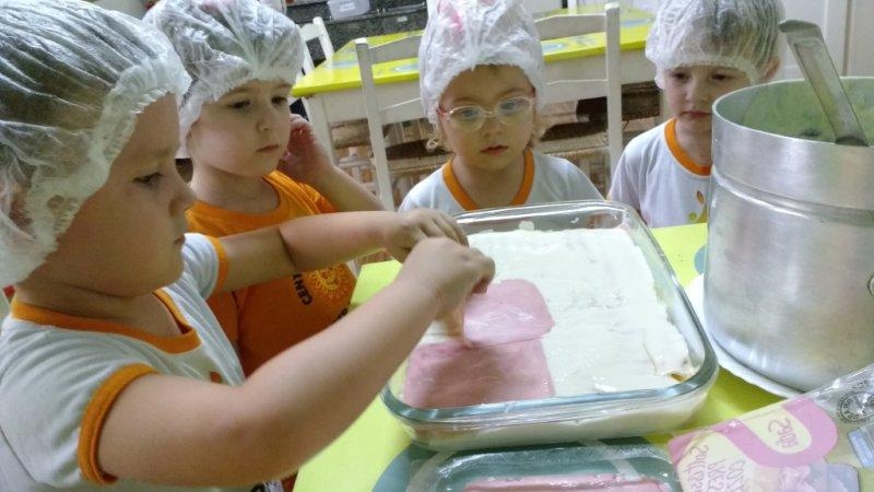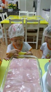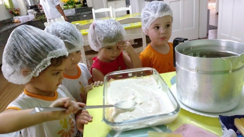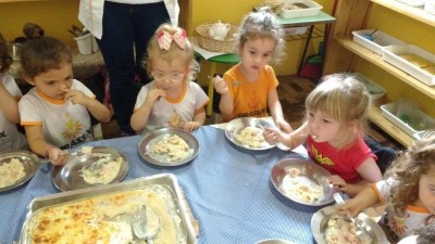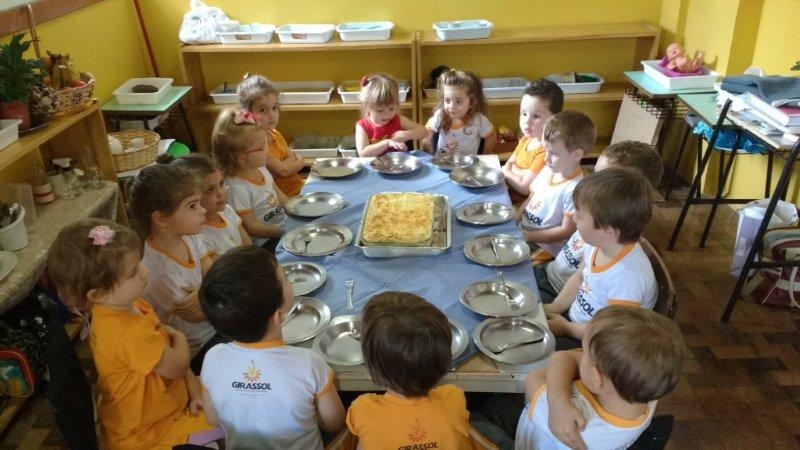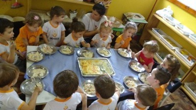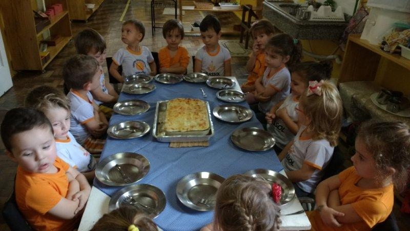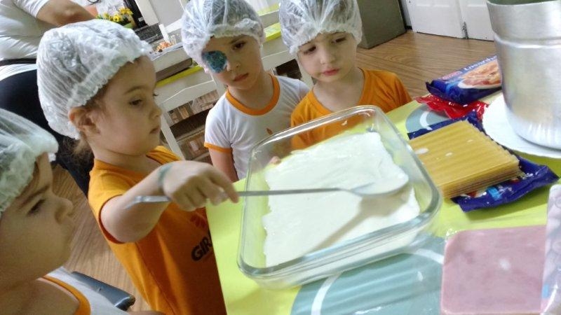 As crianças pequenas necessitam se sentir úteis e aprenderem a ser valorizadas pelo que conseguem fazer. Gostam de realizar atividade de "gente" grande podendo assim demonstrar o quanto cresceram. O lanche coletivo é uma estratégia da área de linguagem, possibilitando que as crianças realizem receitas junto de suas mestras organizando sua mente e seu corpo com instruções e comando necessários na realização da preparação dos alimentos. A turma Bem-Te-Vi adora as oficinas do lanche coletivo, neste caso uma lasanha deliciosa!