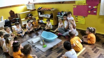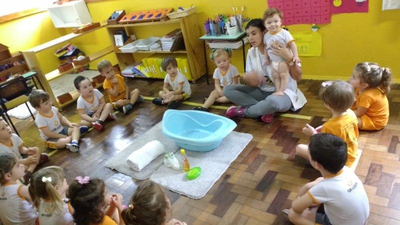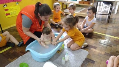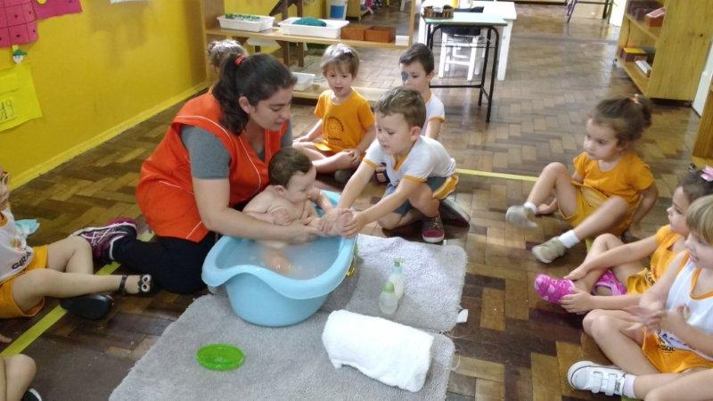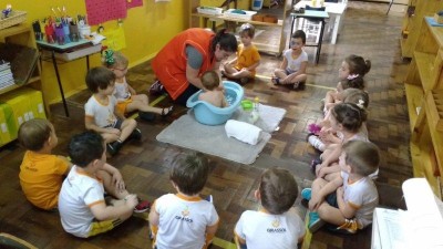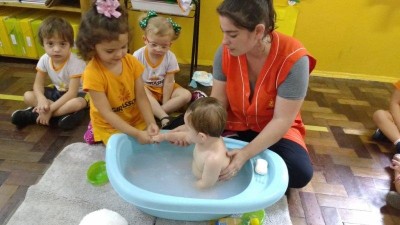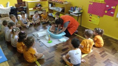 No projeto desenvolvido pela turma Bem-Te-Vi diversas atividades foram realizadas com os pequenos para que pudessem se descobrir como ser único, observando as diferenças do outro. Para trabalhar as partes do corpo e o cuidado com o outro, a turma realizou a atividade do banho do bebê com o aluno da turma Abelhinha Vinicius, que veio realizar a atividade com mamãe, a professora Silvia, um momento de muito aprendizado. "A tarefa do professor é preparar motivações para atividades num ambiente previamente organizado, e depois se abster de intervir" (Maria Montessori)