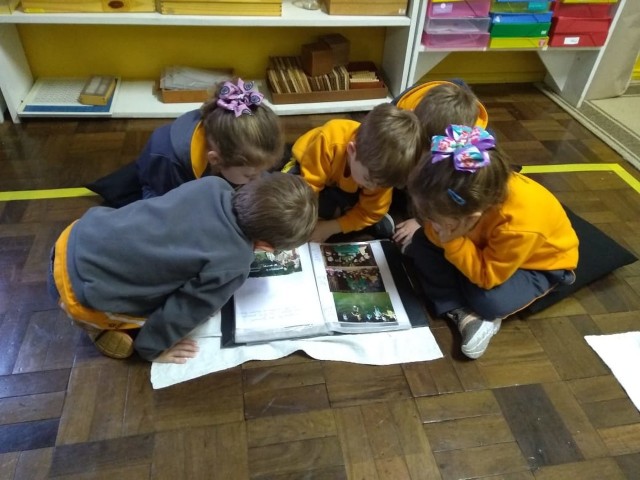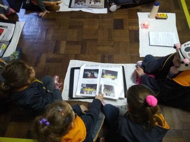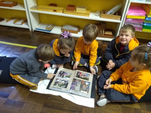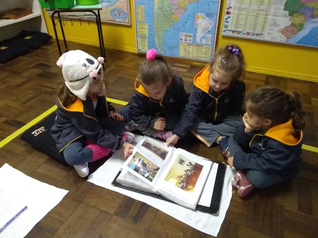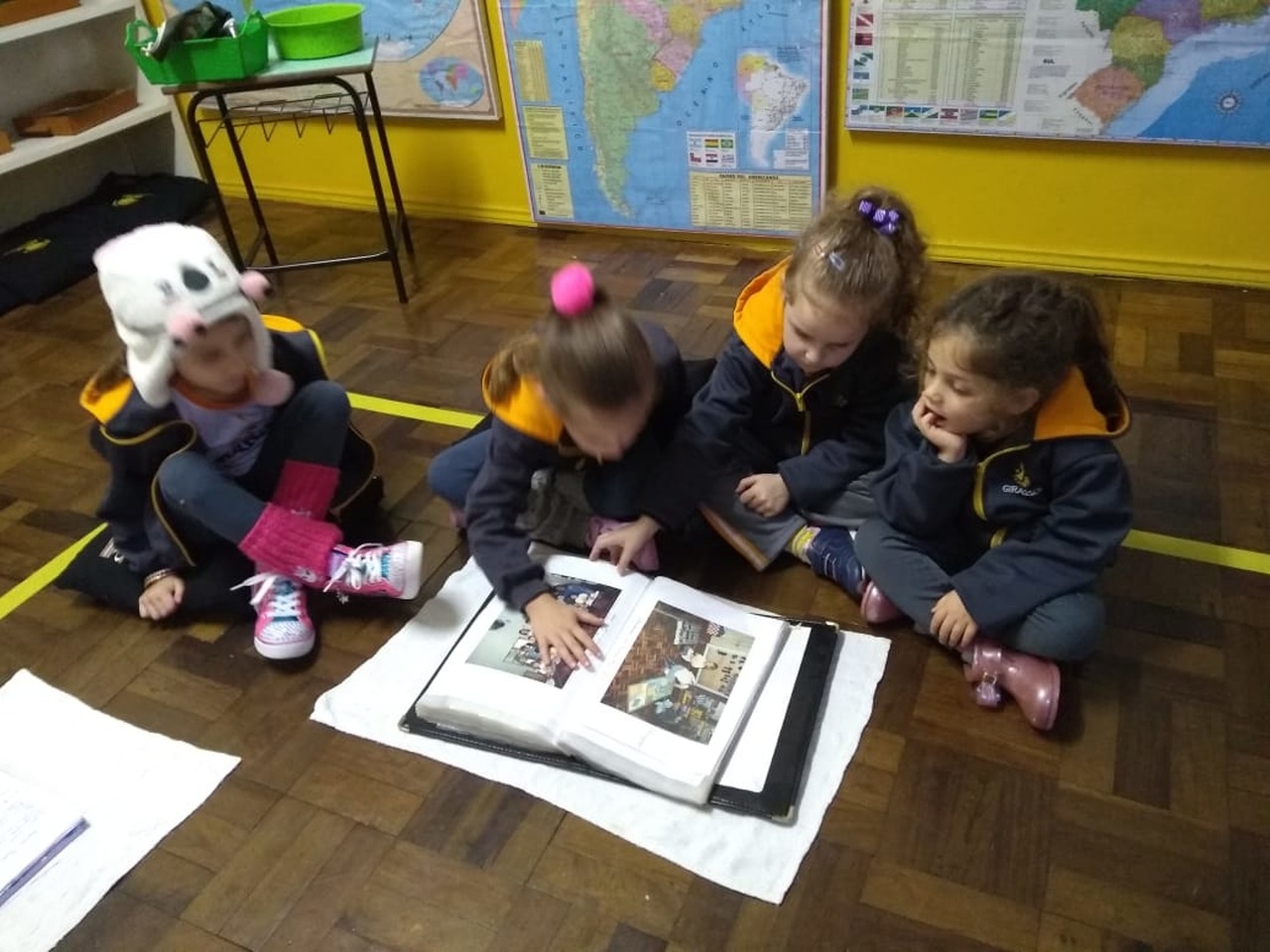 Conhecer o ambiente que convivemos é a maneira perfeita de entender tudo que acontece. A Turma Rouxinol, através de uma aula de linha, pôde conhecer a história da Escola Girassol, desde seu início até os dias de hoje. Através das fotografias apresentadas pelas educadoras, puderam identificar as transformações que ocorreram, relacionando-as. Ensinar sobre o passar do tempo é algo muito valioso para as crianças, pois assim conseguem compreender as transformações que ocorrem tanto no ambiente que vivem, quanto nos seres humanos que junto convivem.