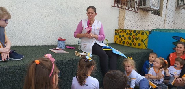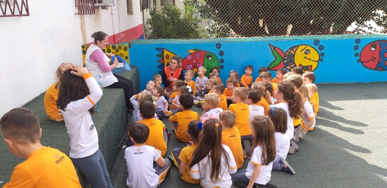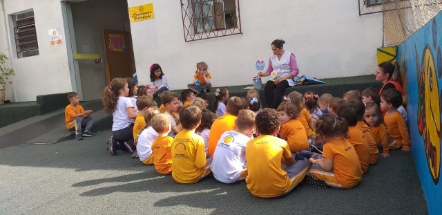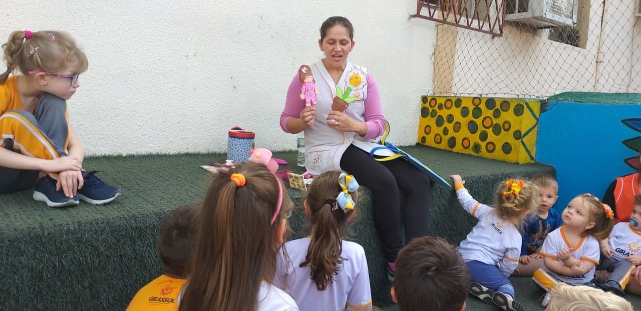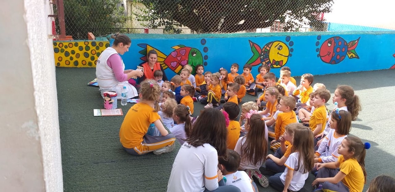 O projeto TAC (Tolerância, Aprendizado e Conhecimento) é realizado toda a semana na escola Girassol com o objetivo de proporcionar às crianças um momento de interação com outras idades. Desta vez o 1º Ano do Ensino Fundamental e os amigos da turma Canarinho realizaram a atividade juntos para uma linda Hora da História. A diferença de idade entre as crianças faz a magia do momento, e as aprendizagens são para a vida e nossos pequenos só tem a ganhar, estando em uma escola que além de se preocupar com a cognição se preocupa com a construção de um ser humano cada vez mais humano.