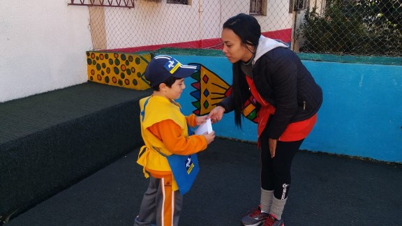 surpreendida por uma atividade muito criativa das educadoras, onde