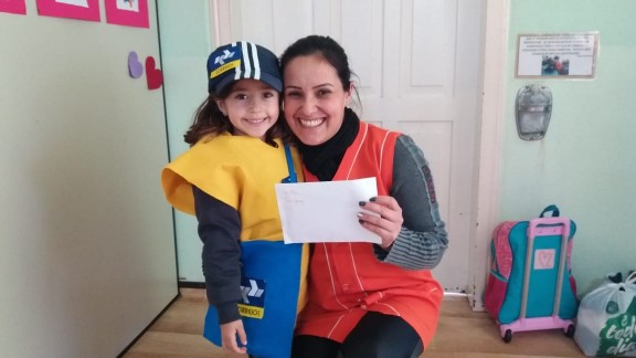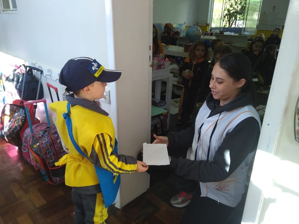lindas cartas e realizaram a entrega  para  pessoas no ambiente escolar, uma forma de