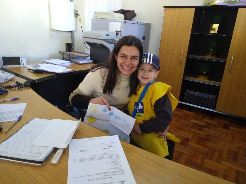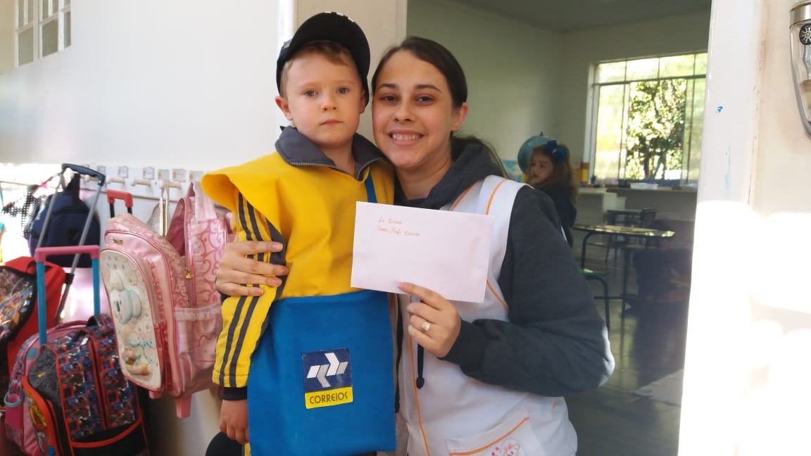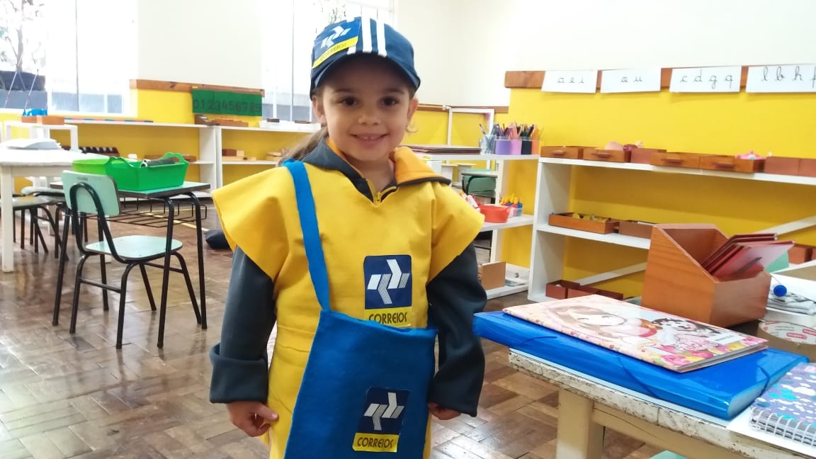 proporcionaram uma roupa personalizada de Correios. Nossos pequenos fizeram