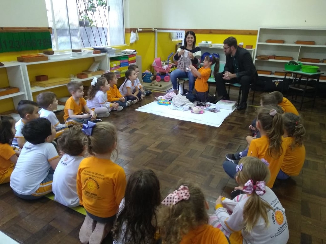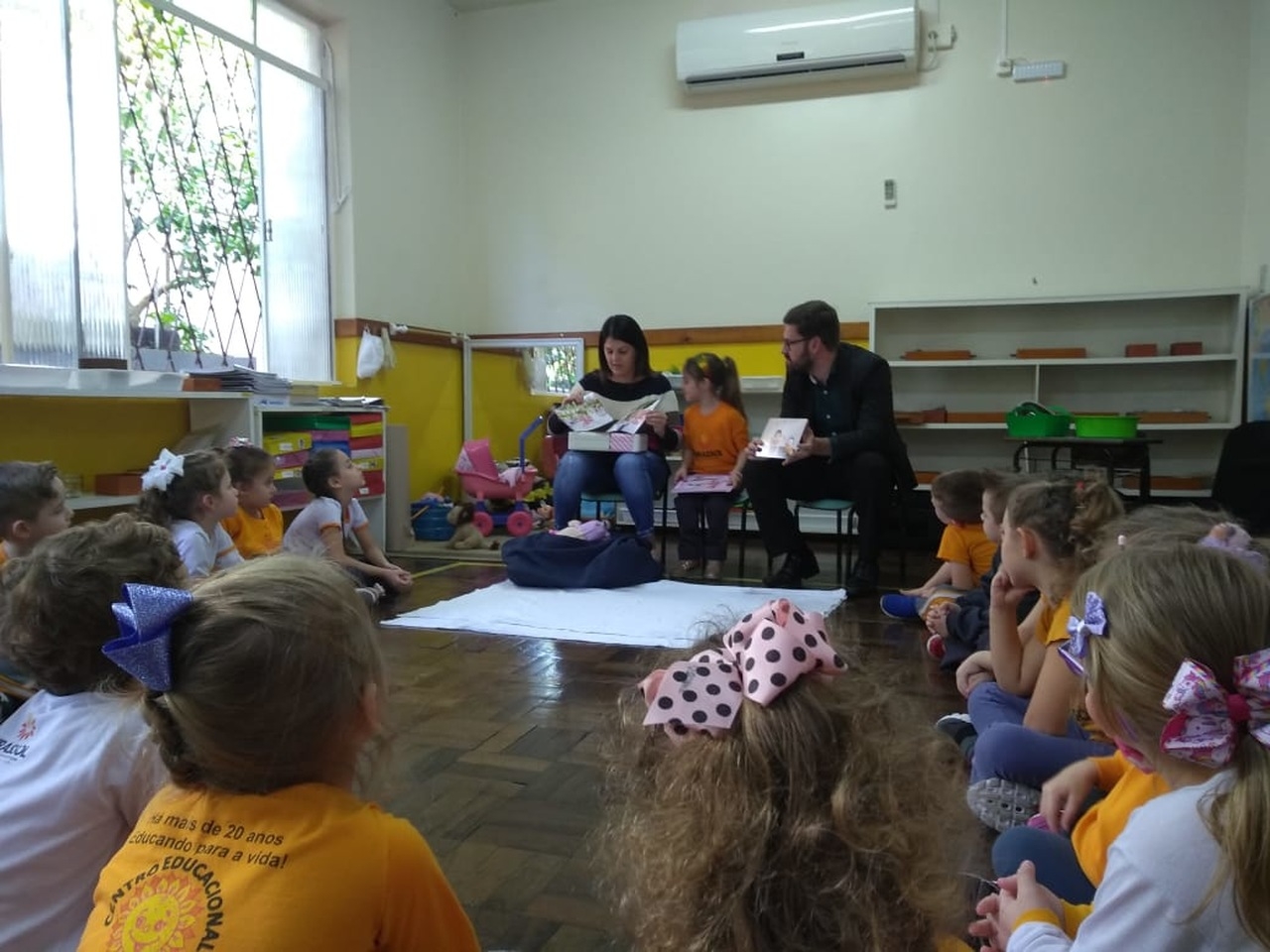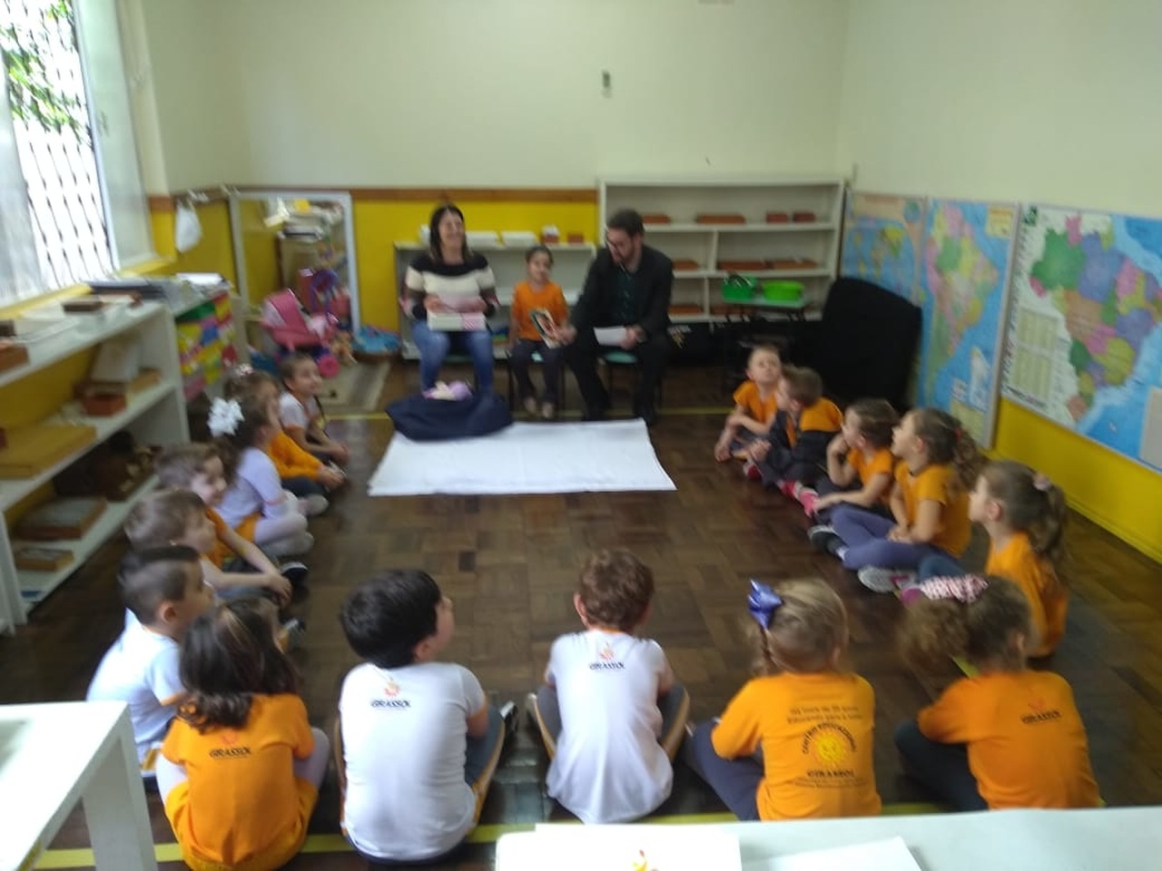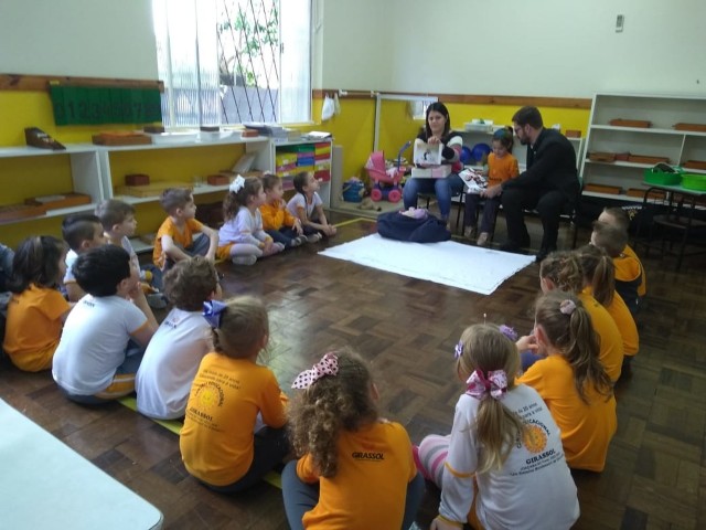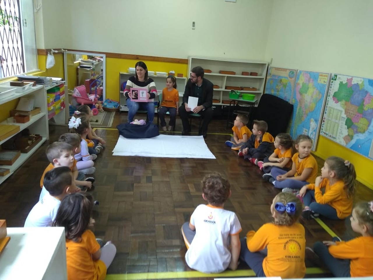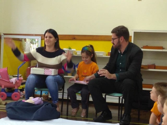 Nossa escola realiza um trabalho intenso em parceria com as famílias. Este ano as turmas das alfabetizações estão fazendo um projeto lindo que traz o papai e a mamãe para dentro da sala de aula. Um dia da semana o casal vem até a escola para contar um pouquinho da história da vida de seu filho. Desta vez a mamãe e o papai da amiga Laura estiveram contando uma linda história para a turma Rouxinol. A presença da família cria na memória das crianças momentos de alegria e felicidade, além de orgulho e admiração.