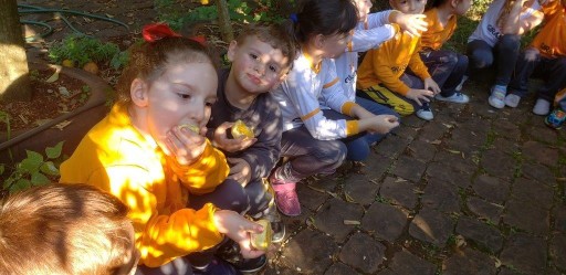 Muitas atividades diárias na Escola Girassol são realizadas ao ar livre, para que a criança vivencie outros espaços. Dessa vez a Turma Quero-Quero passou algum tempo na horta da escola, onde além de experimentarem os seus sabores, puderam passar um momento diferente com os colegas.