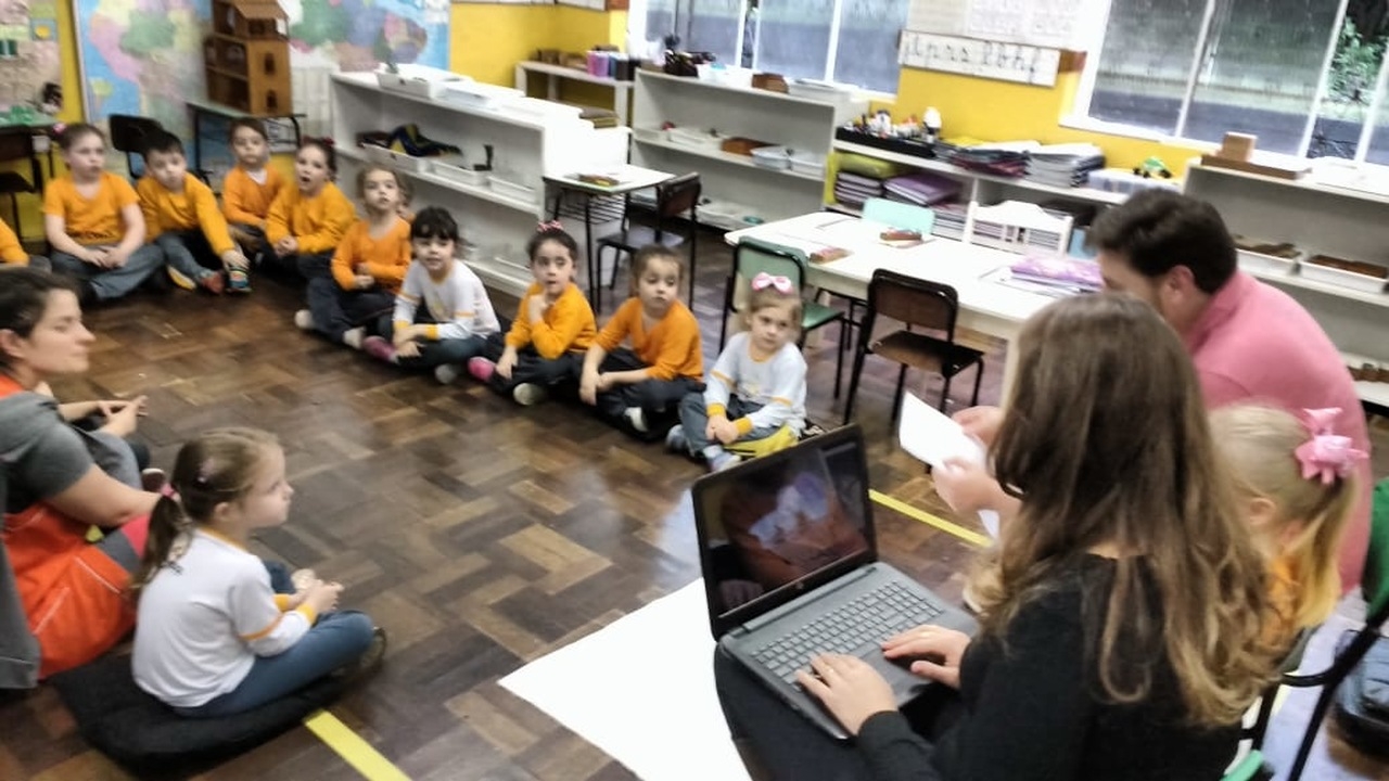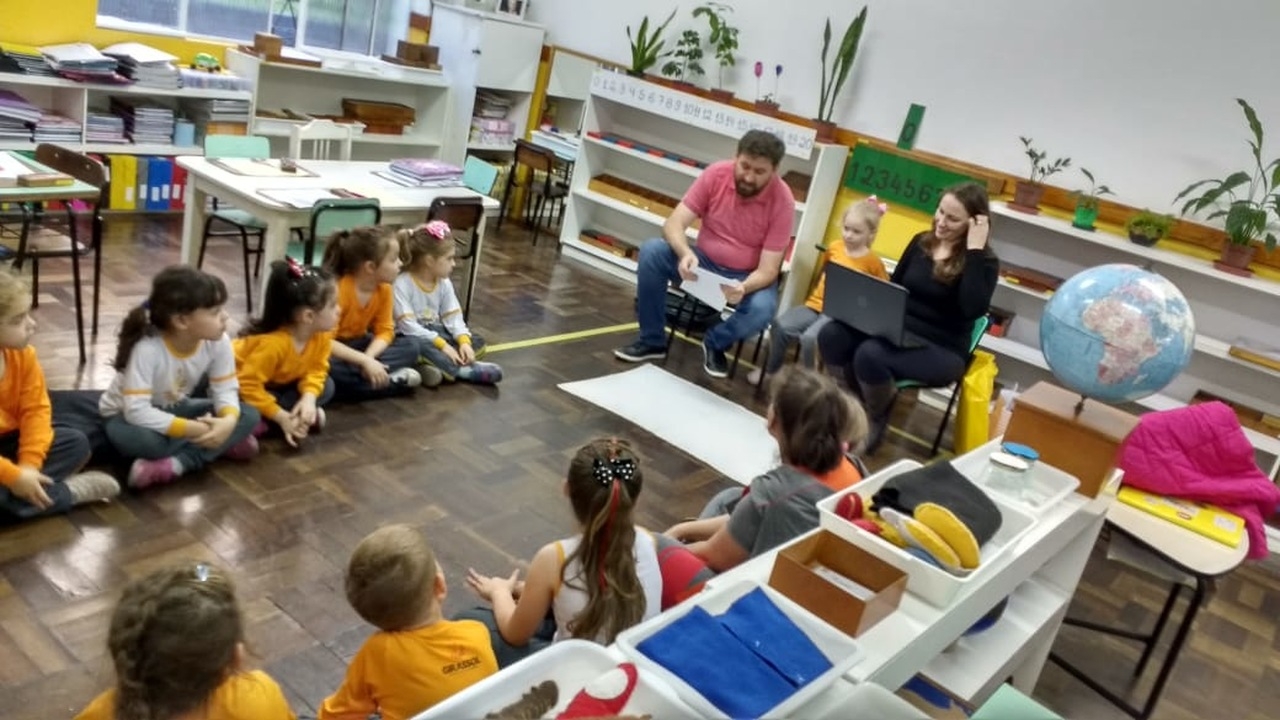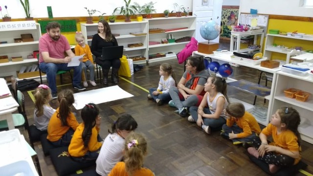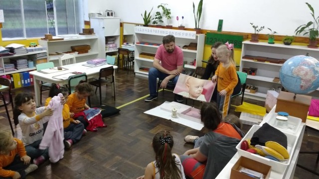 Nossa escola realiza um trabalho intenso em parceria com as famílias. Este ano as turmas das alfabetizações estão fazendo um projeto lindo que traz o papai e a mamãe para dentro da sala de aula. Um dia da semana o casal vem até a escola para contar um pouquinho da história da vida de seu filho. Desta vez a mamãe e o papai da amiga Manuela estiveram contando uma linda história para a turma Quero-Quero. A presença da família cria na memória das crianças momentos de alegria e felicidade, além de orgulho e admiração.