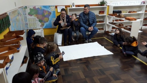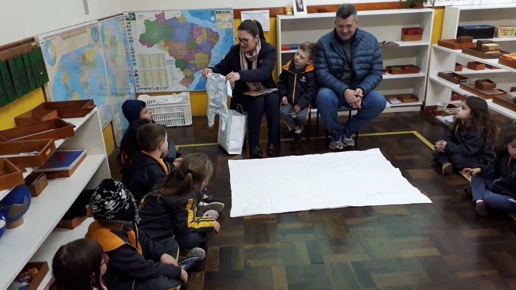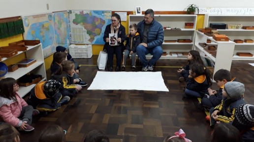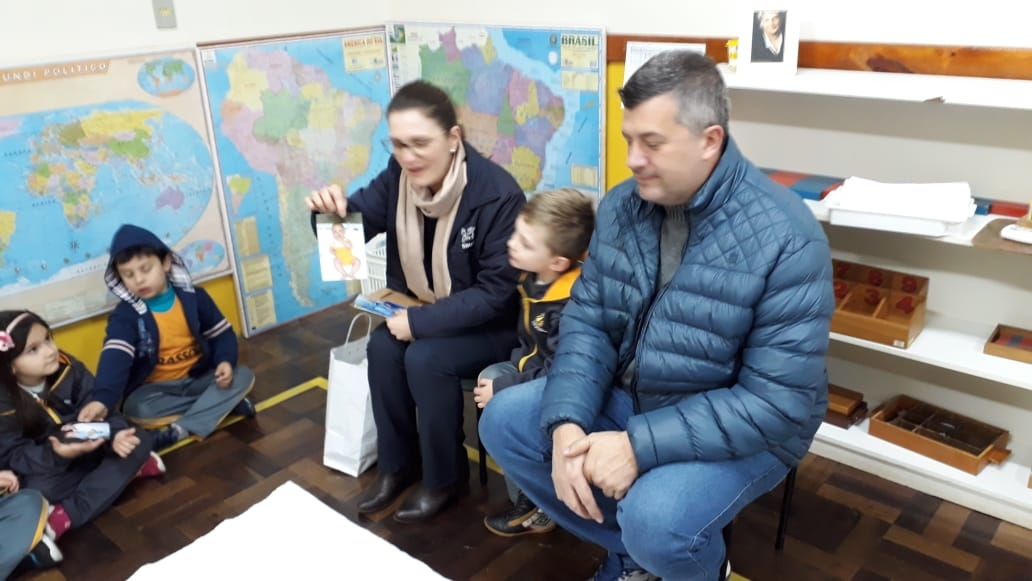 Nossa escola realiza um trabalho intenso em parceria com as famílias. Este ano as turmas das alfabetizações estão fazendo um projeto lindo que traz o papai e a mamãe para dentro da sala de aula. Um dia da semana o casal vem até a escola para contar um pouquinho da história da vida de seu filho. Desta vez a mamãe e o papai do amigo Luiz Antônio estiveram contando uma linda história para a turma Sabiá. A presença da família cria na memória das crianças momentos de alegria e felicidade, além de orgulho e admiração.