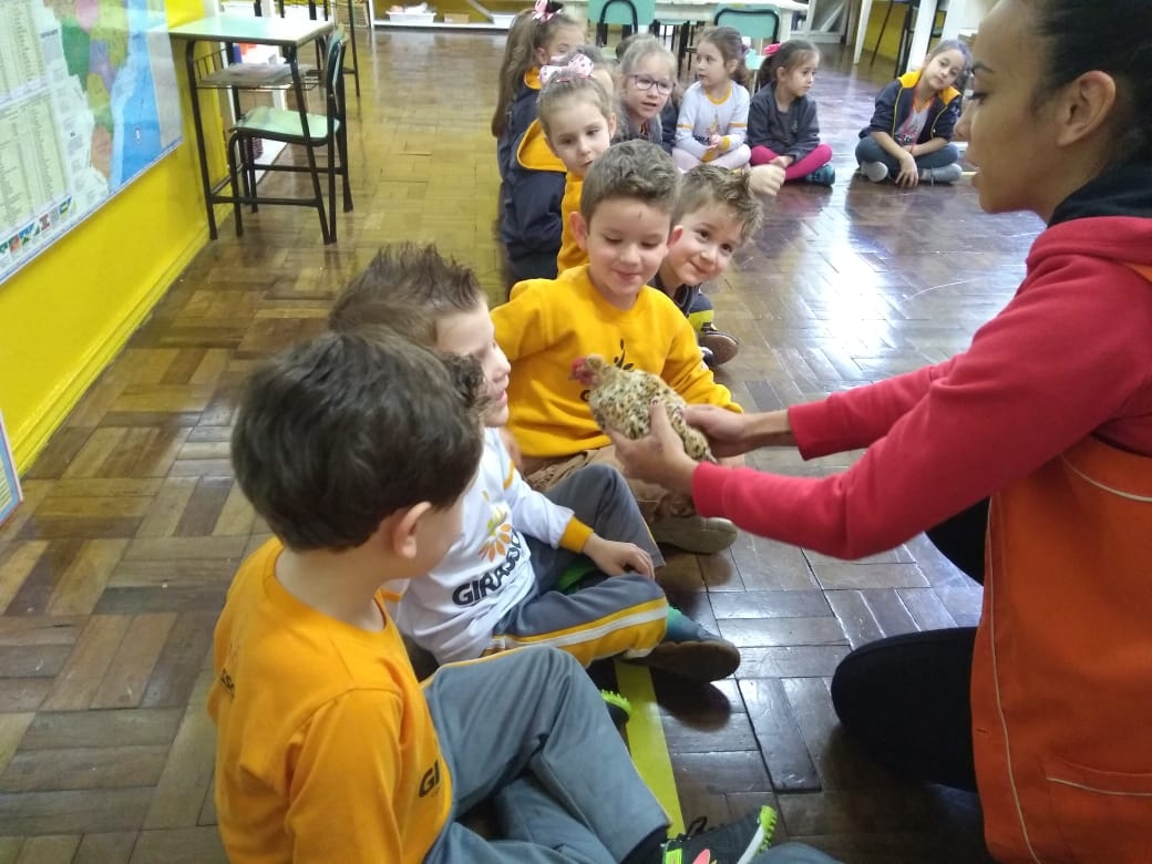 No estudo dos três Reinos, a turma Rouxinol buscou relacionar os conteúdos dos Vegetais, Animais e Minerais de uma forma lúdica e prazerosa, realizando um trabalho perfeitamente integrado, abordando diferentes áreas do conhecimento para que os alunos cheguem à real compreensão do binômio homem/natureza e do papel do ser humano como agente de transformação capaz de agir e interagir com o meio ambiente e com os animais. Para uma aprendizagem mais significativa do Reino Animal as educadoras realizaram atividades que movessem os sentidos da criança. Uma das atividades no estudo das Aves foi conhecer a galinha.Objetivos do Projeto:* Conhecer o Reino Animal*Identificar e classificar os animais;