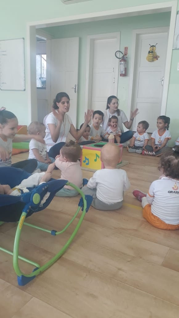 O projeto TAC (Tolerância, Aprendizado e Conhecimento) é realizado toda a semana na escola Girassol com o objetivo de proporcionar às crianças um momento de interação com outras idades. Dessa vez os amigos da Turma Quero-Quero realizaram as atividades com a Turma Abelhinha.