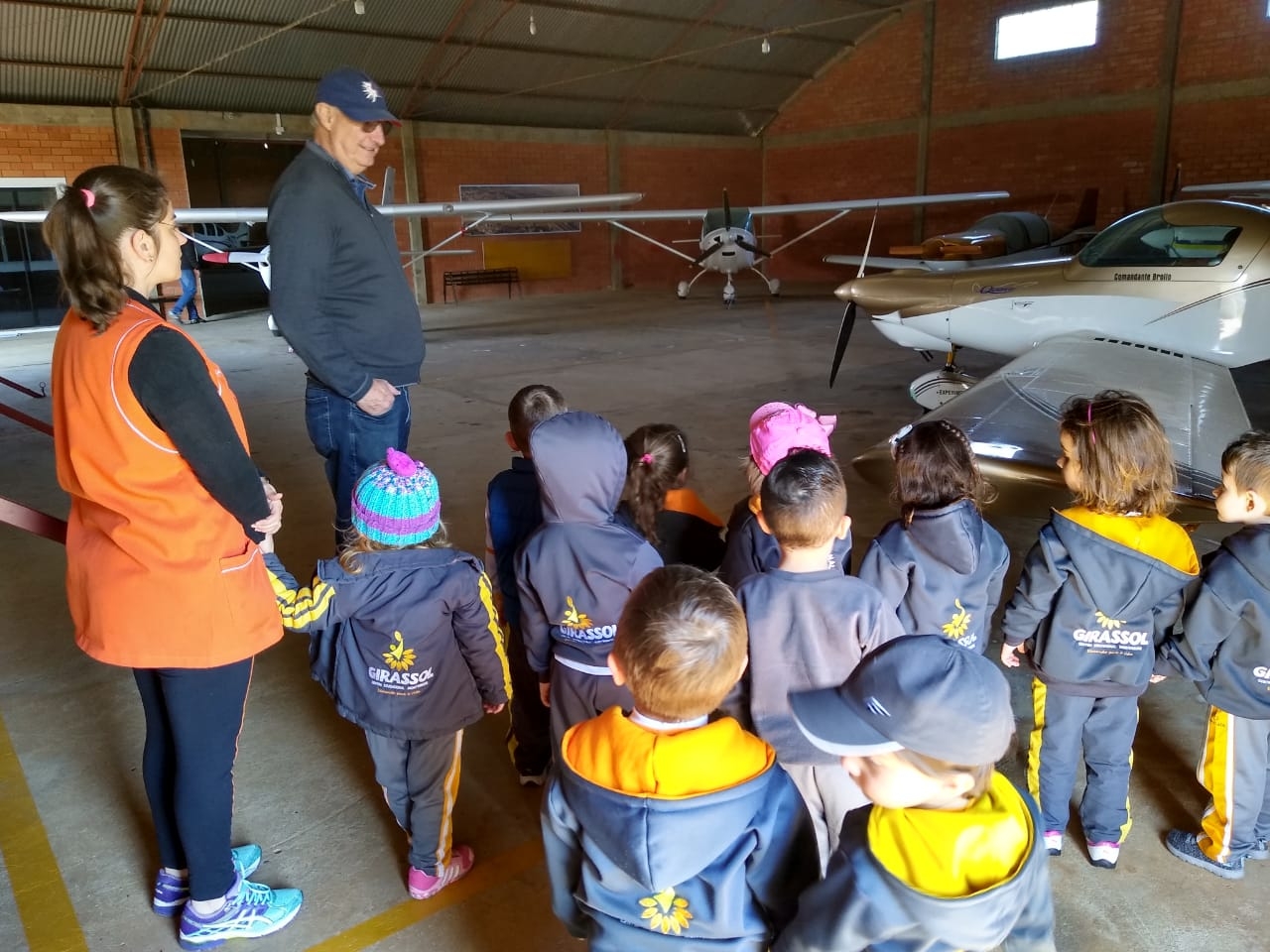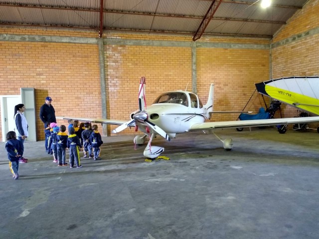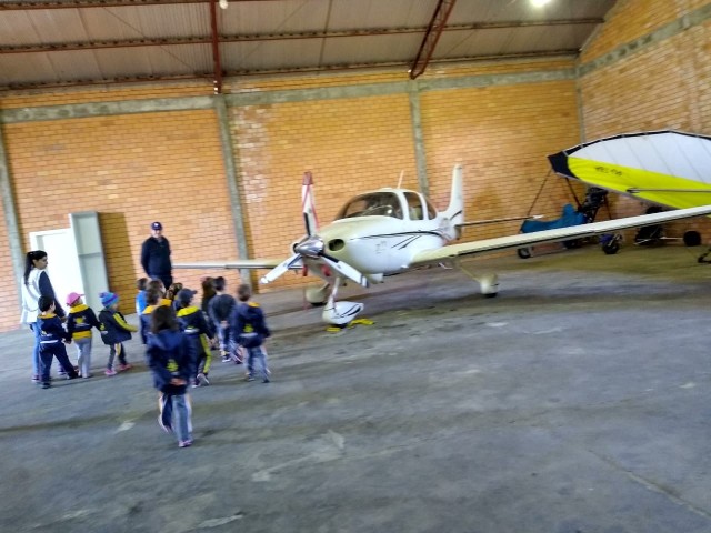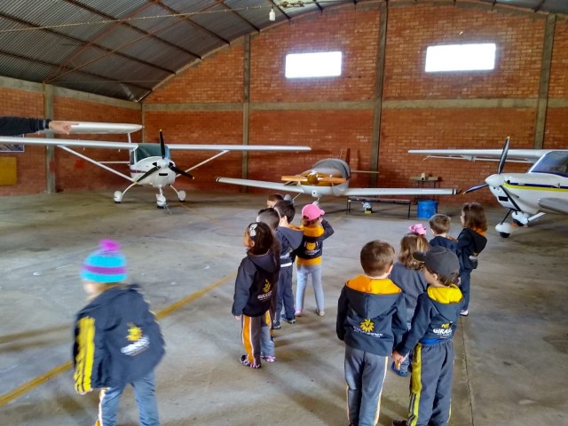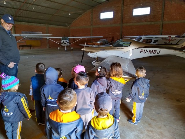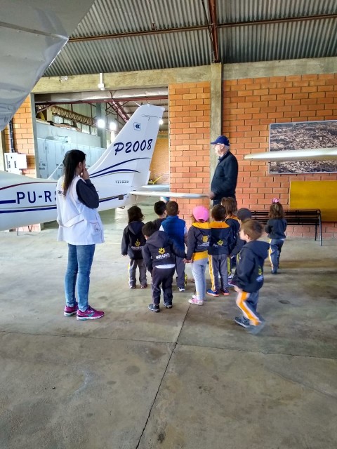 O estudo sobre os meios de transporte levou a Turma Bem-Te-Vi a realizar uma visita de estudo no Aeroporto de Joaçaba. Na oportunidade as crianças receberam uma explicação sobre o funcionamento do aeroporto do ex piloto, seu Arthur Lindner, vô da colega Sofia. Com certeza, nossos pequenos ficaram maravilhados com o que viram no local, conhecendo de perto e vivenciando na prática o estudo realizado em sala de aula. Agradecemos o carinho de seu Arthur com as crianças e pelo grande aprendizado repassado!