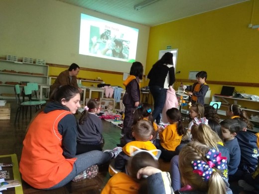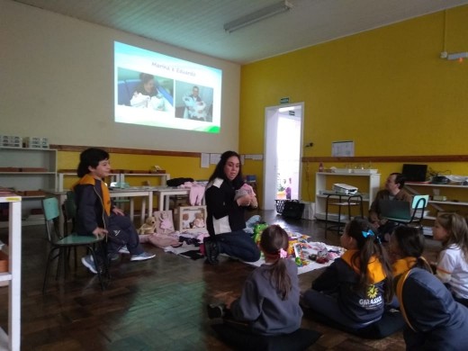Nossa escola realiza um trabalho intenso em parceria com as famílias. Este ano as turmas das alfabetizações estão fazendo um projeto lindo que traz o papai e a mamãe para dentro da sala de aula. Um dia da semana o casal vem até a escola para contar um pouquinho da história da vida de seu filho. Desta vez a mamãe e o papai dos irmãos Eduardo e Marina Dantas estiveram contando uma linda história para as turmas Sabiá e Rouxinol. A presença da família cria na memória das crianças momentos de alegria e felicidade, além de orgulho e admiração.