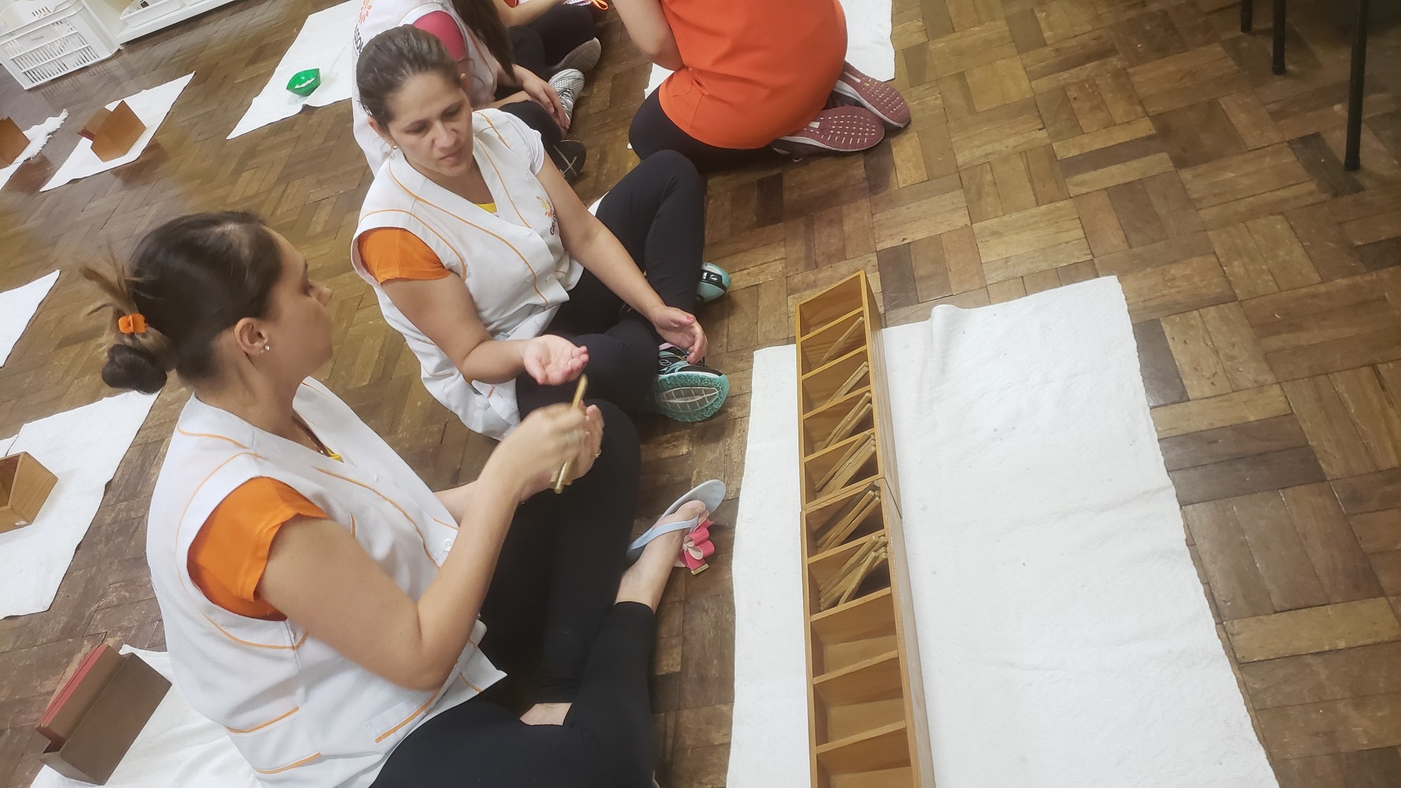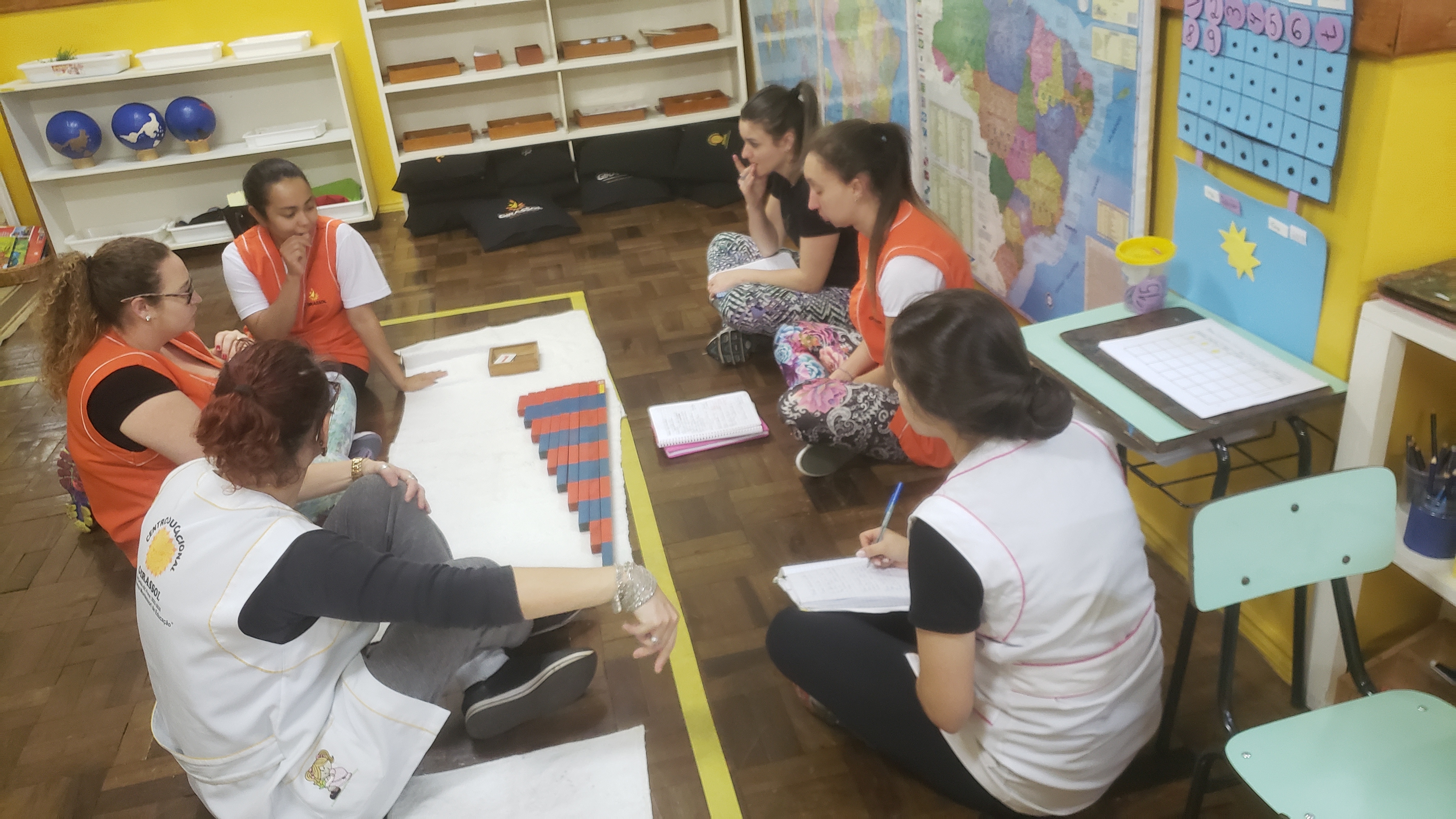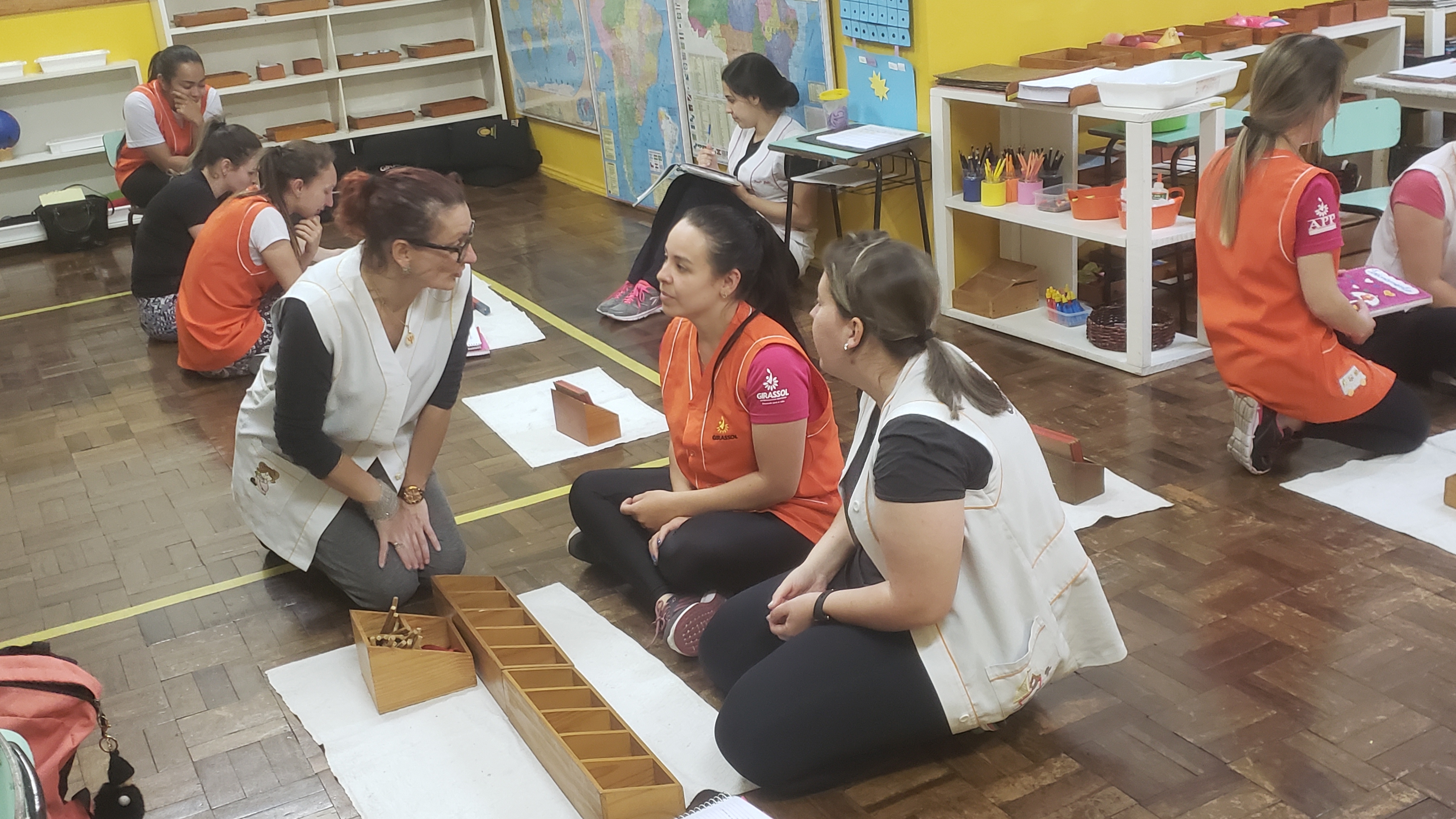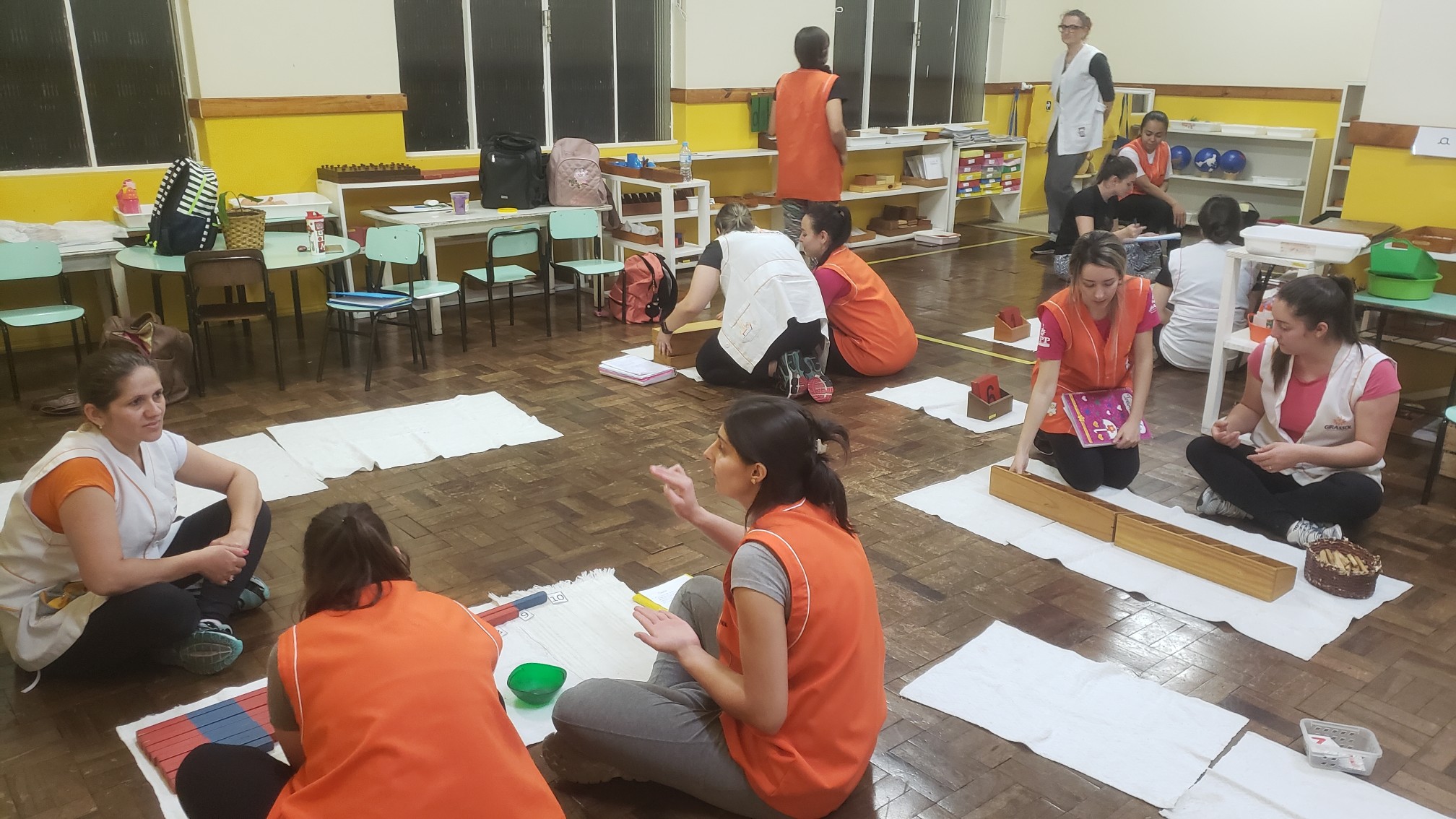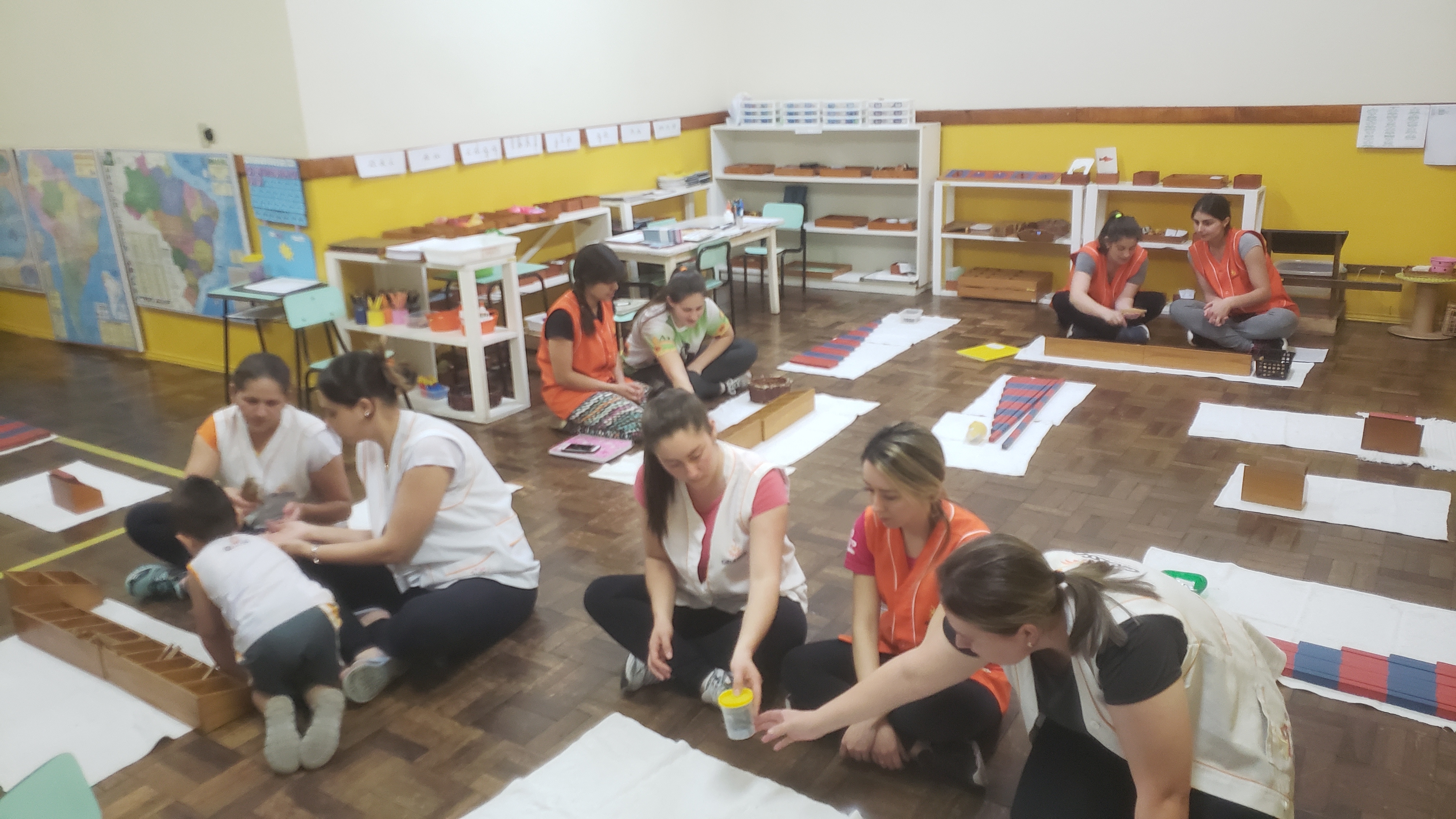 Com a coordenação da consultora Montessori Ruth Specht toda segunda-feira é realizado o treinamento interno da equipe de profissionais da educação infantil com o objetivo de qualificar os professores não só na área montessori, mas abordando vários assuntos de educação e desenvolvimento da criança, ocorrendo trocas de conhecimento entre a equipe. A cada semana uma área de desenvolvimento é trabalhada com apresentação de materiais, trabalho com a filosofia e outros aspectos. Não só a coordenação apresenta o treinamento, mas a equipe toda participa, repassando seus conhecimentos. Esses momentos são essenciais para o aperfeiçoamento profissional e integração da equipe!
