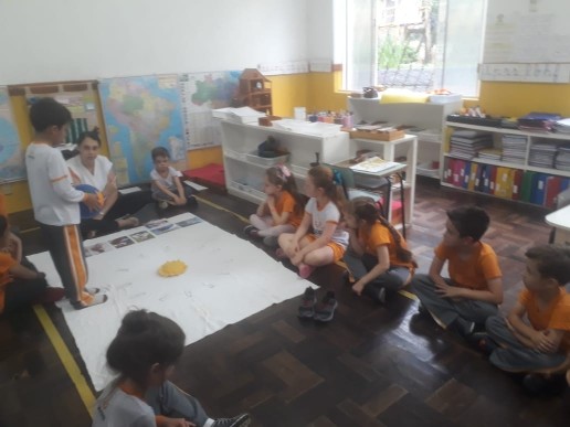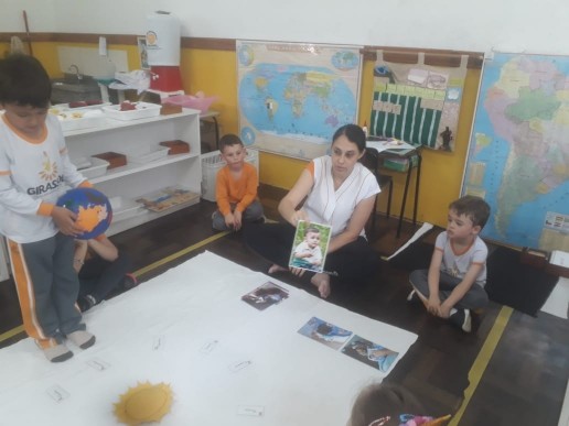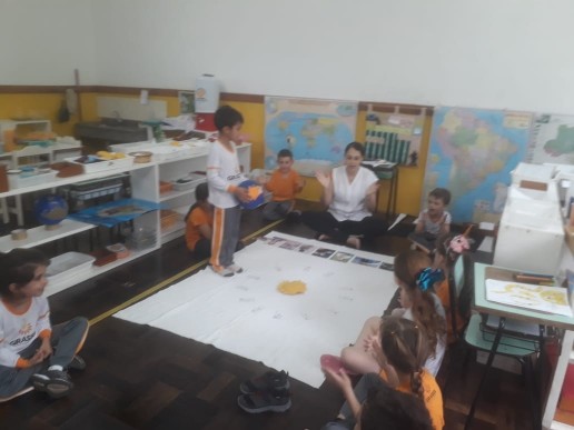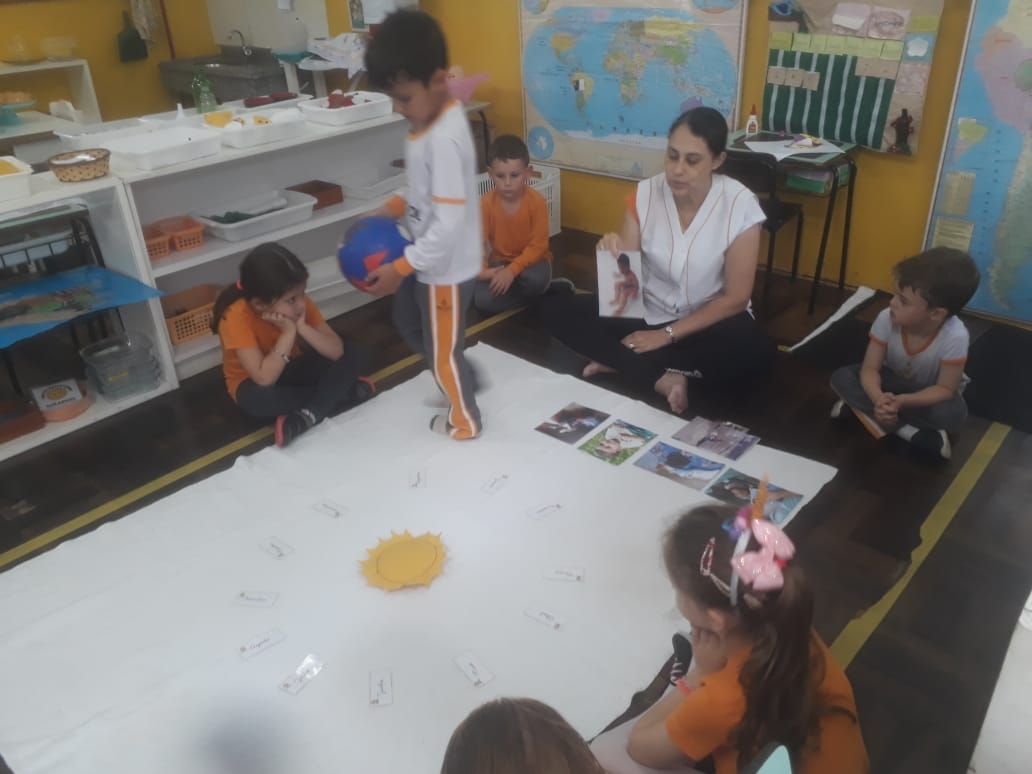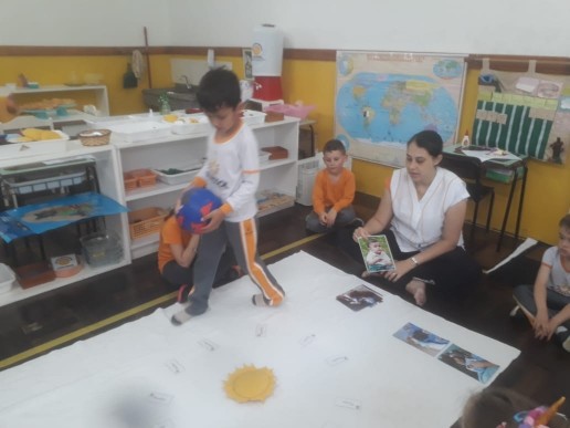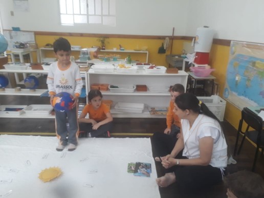 Para comemorar o aniversário do colega Pedro Henrique, os alunos da turma Quero-Quero matutino participaram do Ritual de Aniversário Montessori, que consiste em a professora apresentar aos alunos através de fotografias os anos que se passaram, para que possam perceber as transformações ocorridas com o passar do tempo. A atividade é muito interessante, pois além de comemorar o aniversário da amiga, as crianças podem compreender acerca do passar do tempo através da utilização do globo, entendendo quanto tempo demora para a Terra dar seu giro completo e o que significa o passar de um ano.