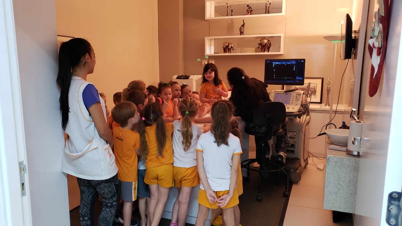 Um dos assuntos trabalhados nas Turmas Sabiá e Rouxinol foi o Corpo Humano e suas partes. A partir desse assunto os alunos e professoras realizaram uma visita de estudos no Instituto do Coração de Joaçaba, onde puderam sentir na prática os batimentos cardíacos e outros aspectos, com a orientação do Dr. Marcelo, Dra. Simone e sua equipe. Na ocasião as crianças conheceram o espaço da Clínica, os materiais utilizados para exames, a equipe de profissionais. Após a visita, puderam lanchar e brincar com os colegas num espaço todo organizado para as crianças. Foi uma tarde de muito aprendizado e diversão. Agradecemos o acolhimento e ensinamentos recebidos!