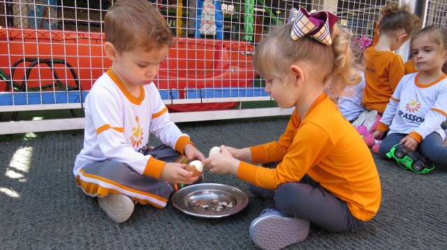 A turma Beija-Flor realizou um estudo sobre a origem do pássaro Beija-Flor, para isso as educadoras utilizaram um ovo para descrever o seu nascimento. Na oportunidade as crianças puderam conhecer as características do pássaro, além de descobrir o porquê de ser o nome de sua turma.