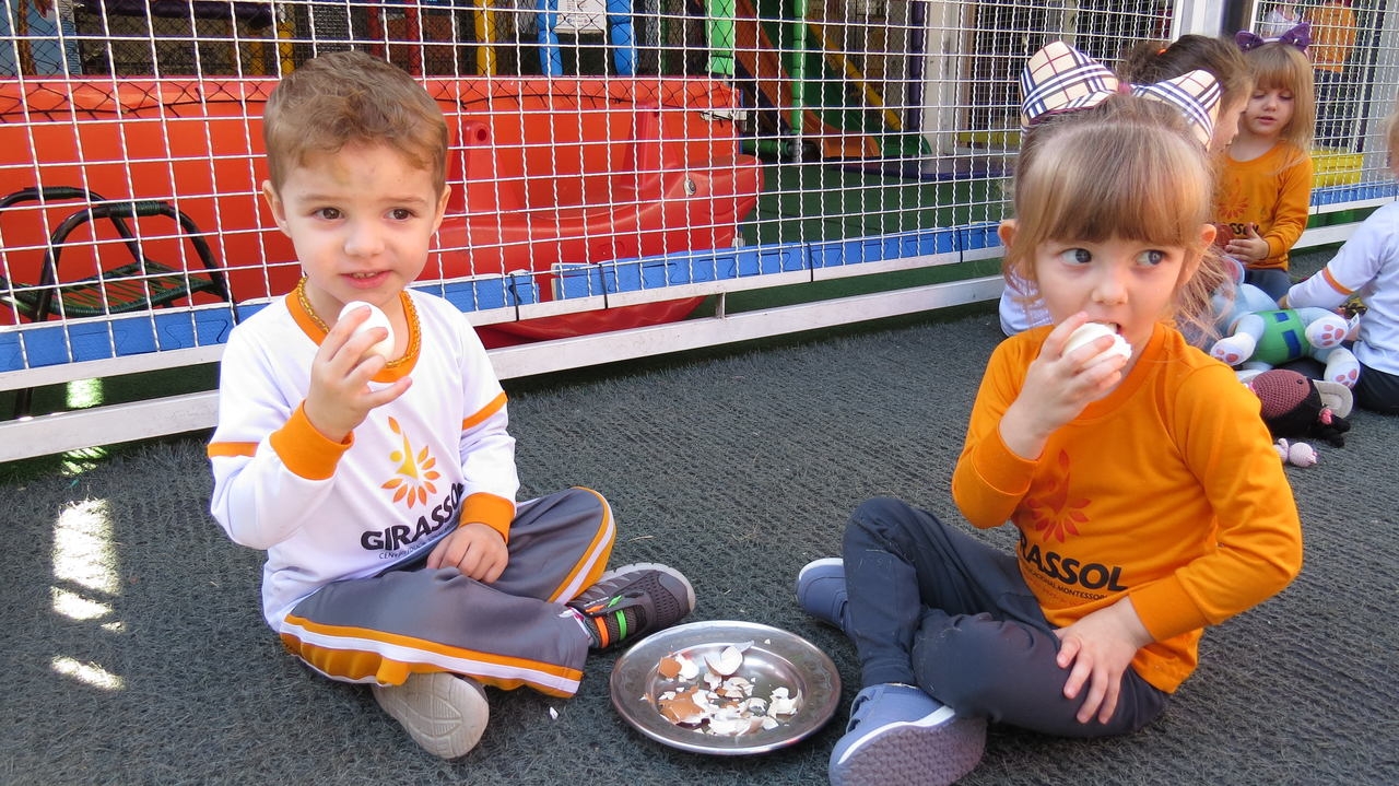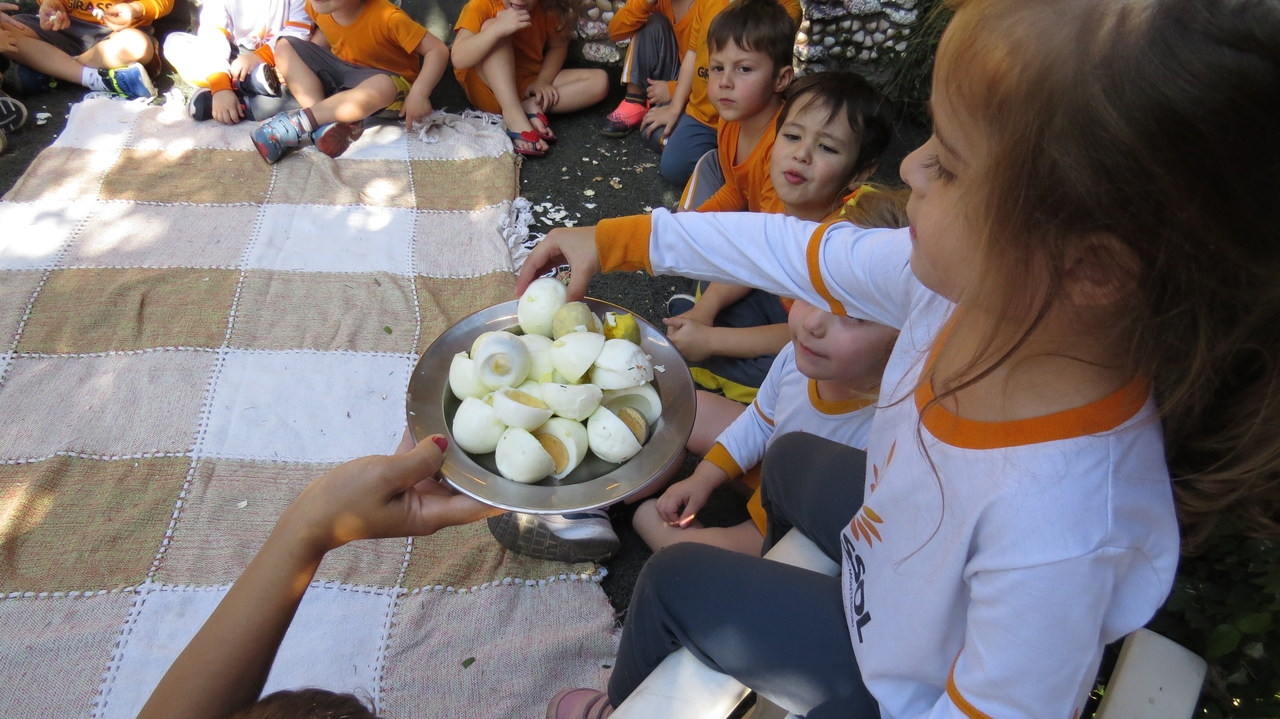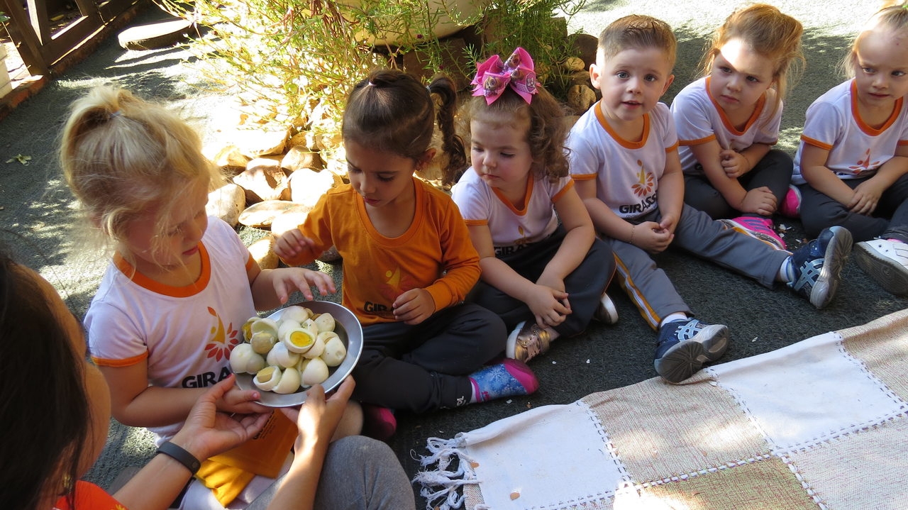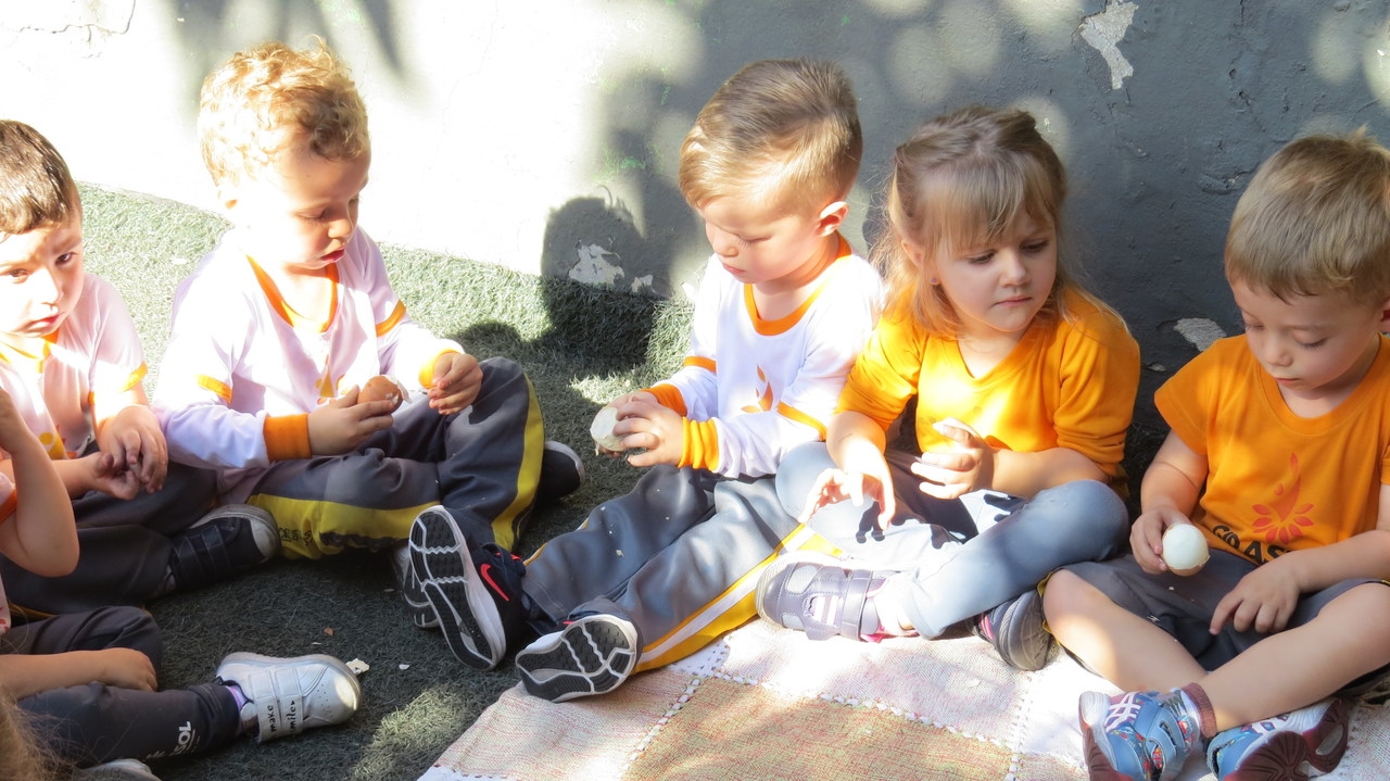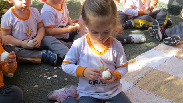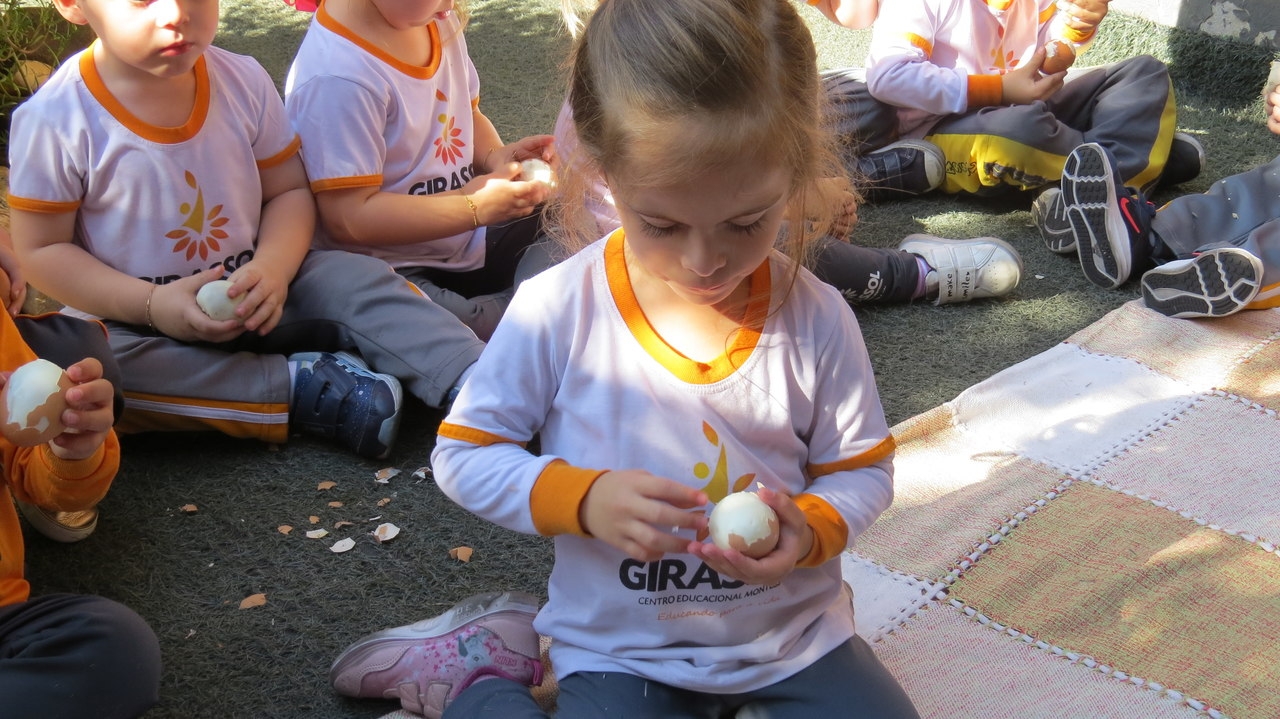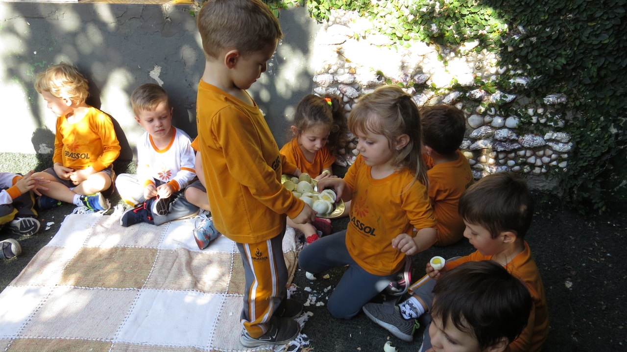 Para finalizar a atividade as crianças fizeram um lanche coletivo com os ovos que serviram de objeto para demonstrar a origem do pássaro.