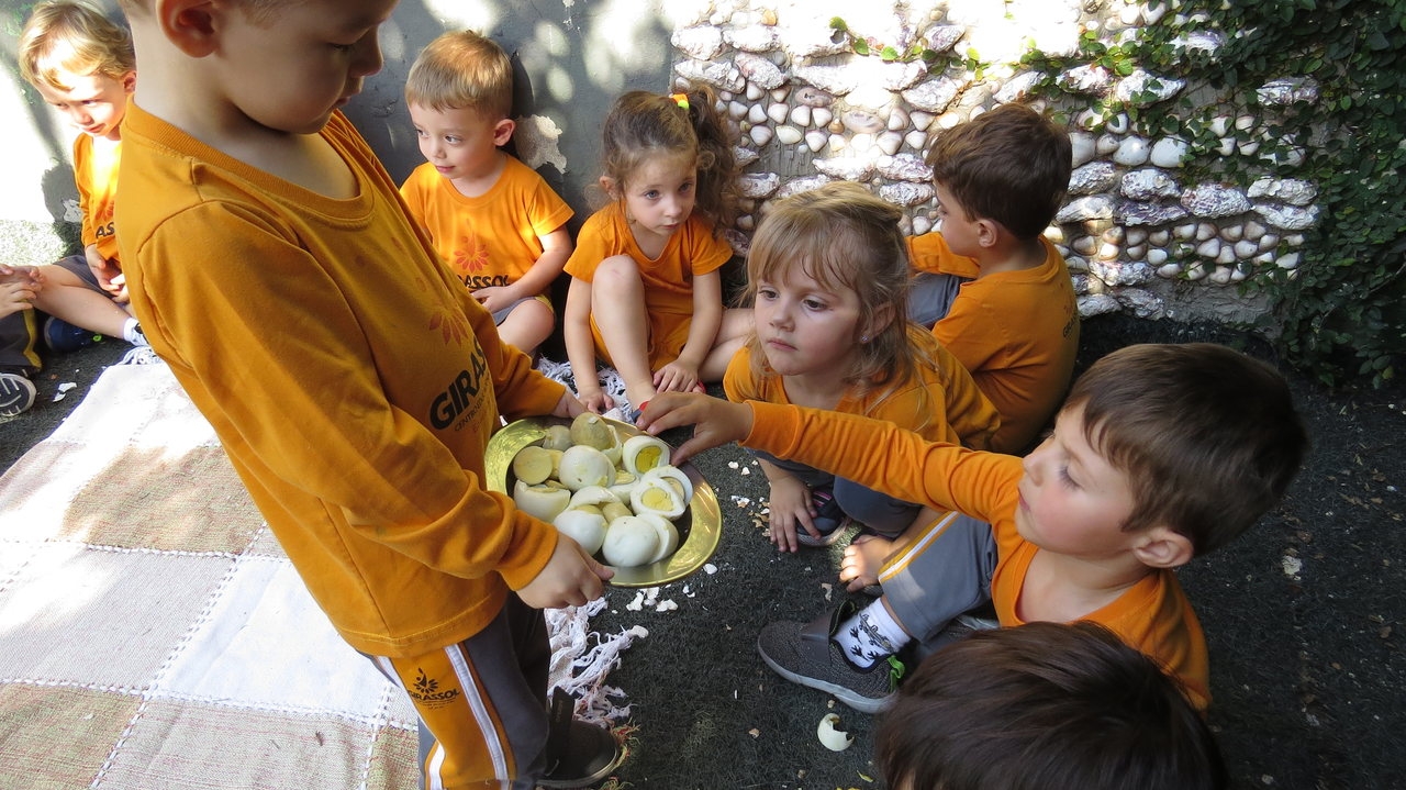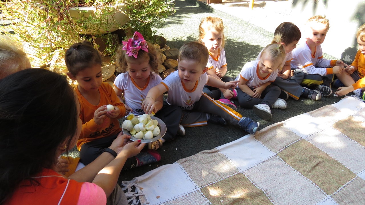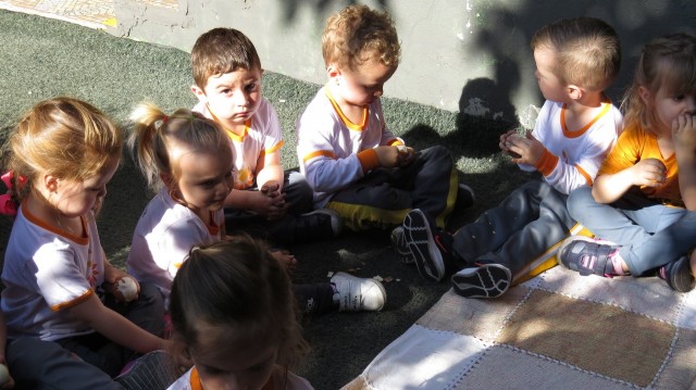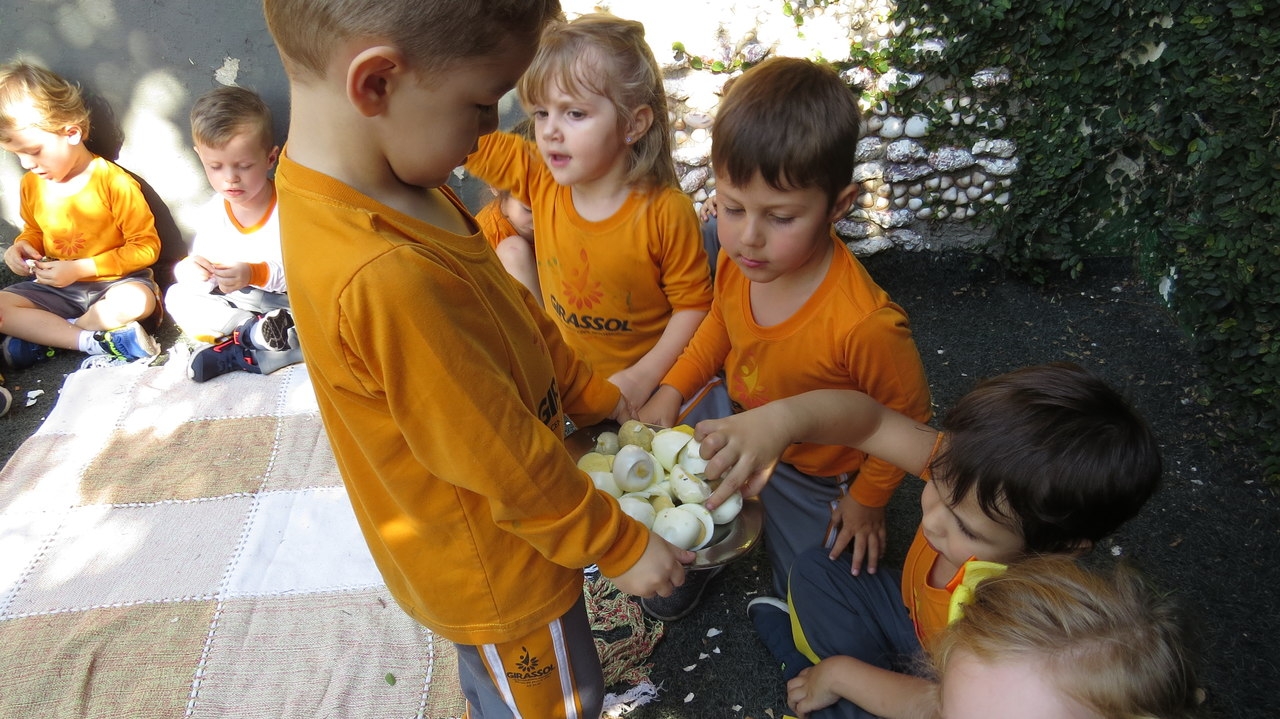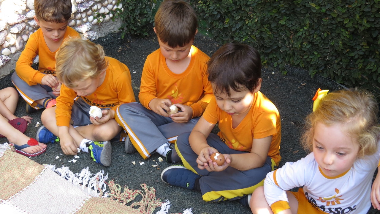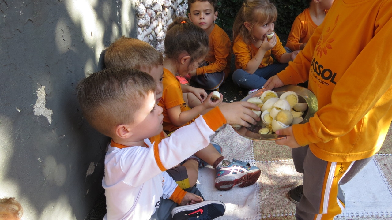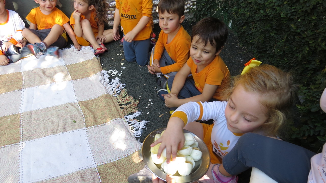 Para finalizar a atividade as crianças fizeram um lanche coletivo com os ovos que serviram de objeto para demonstrar a origem do pássaro.