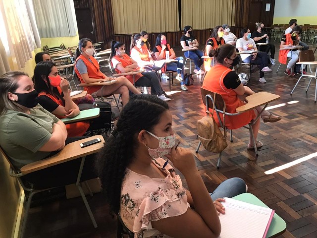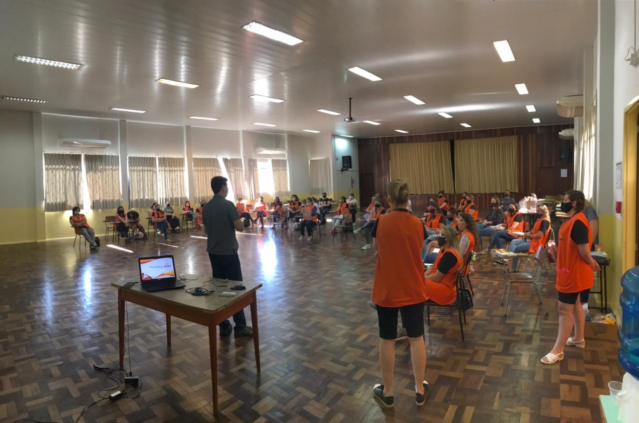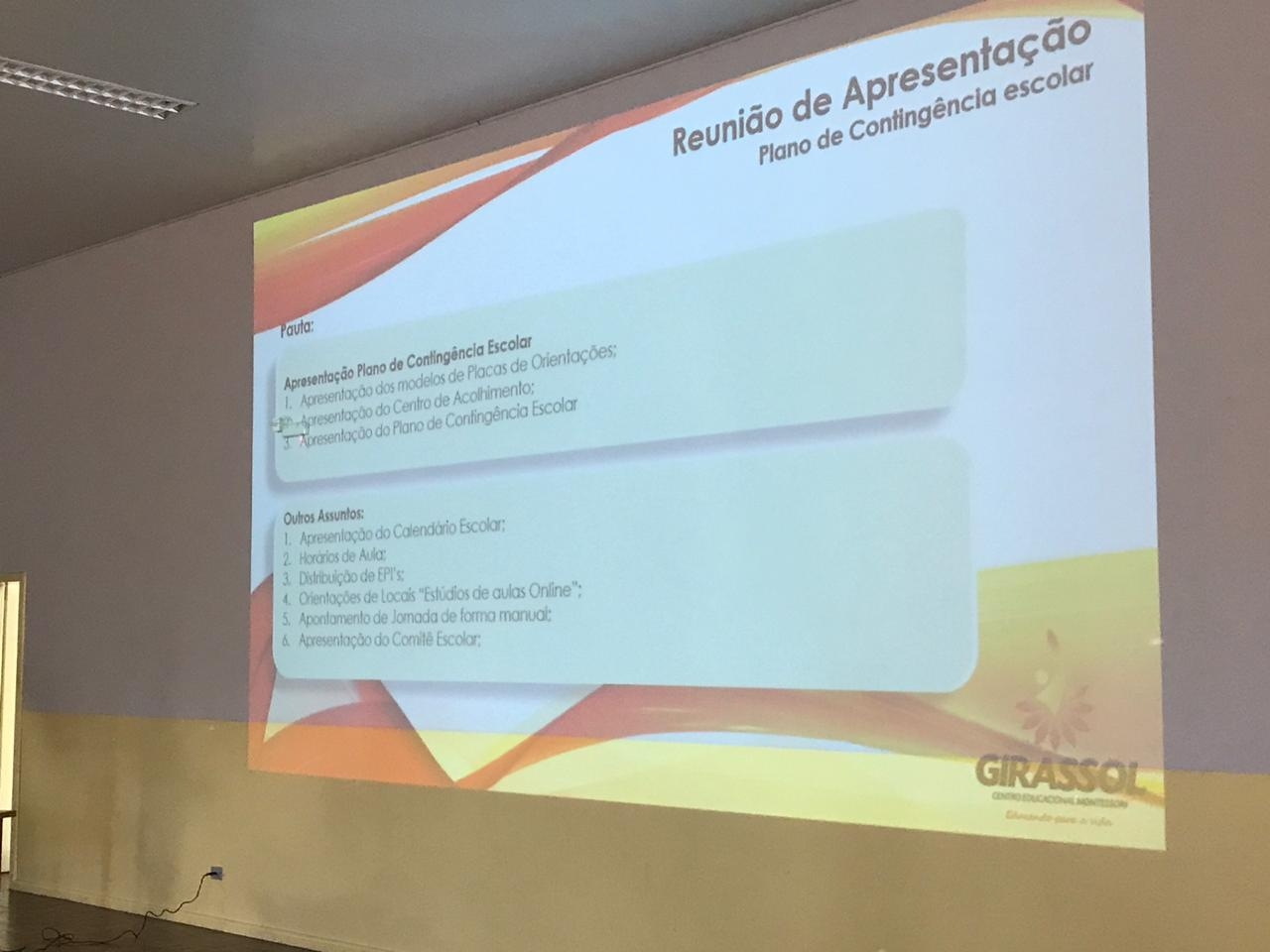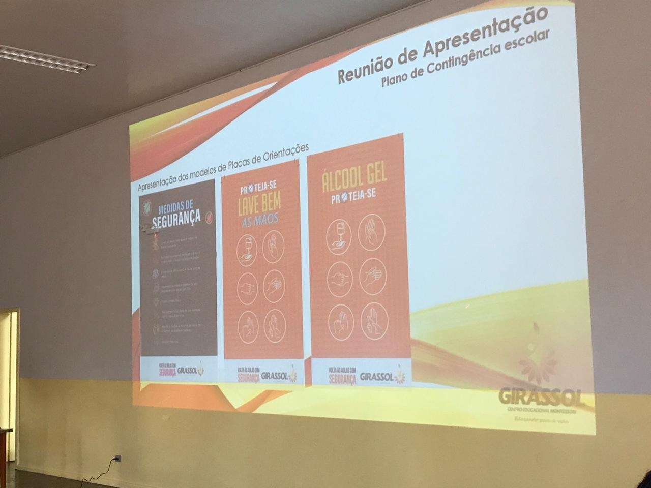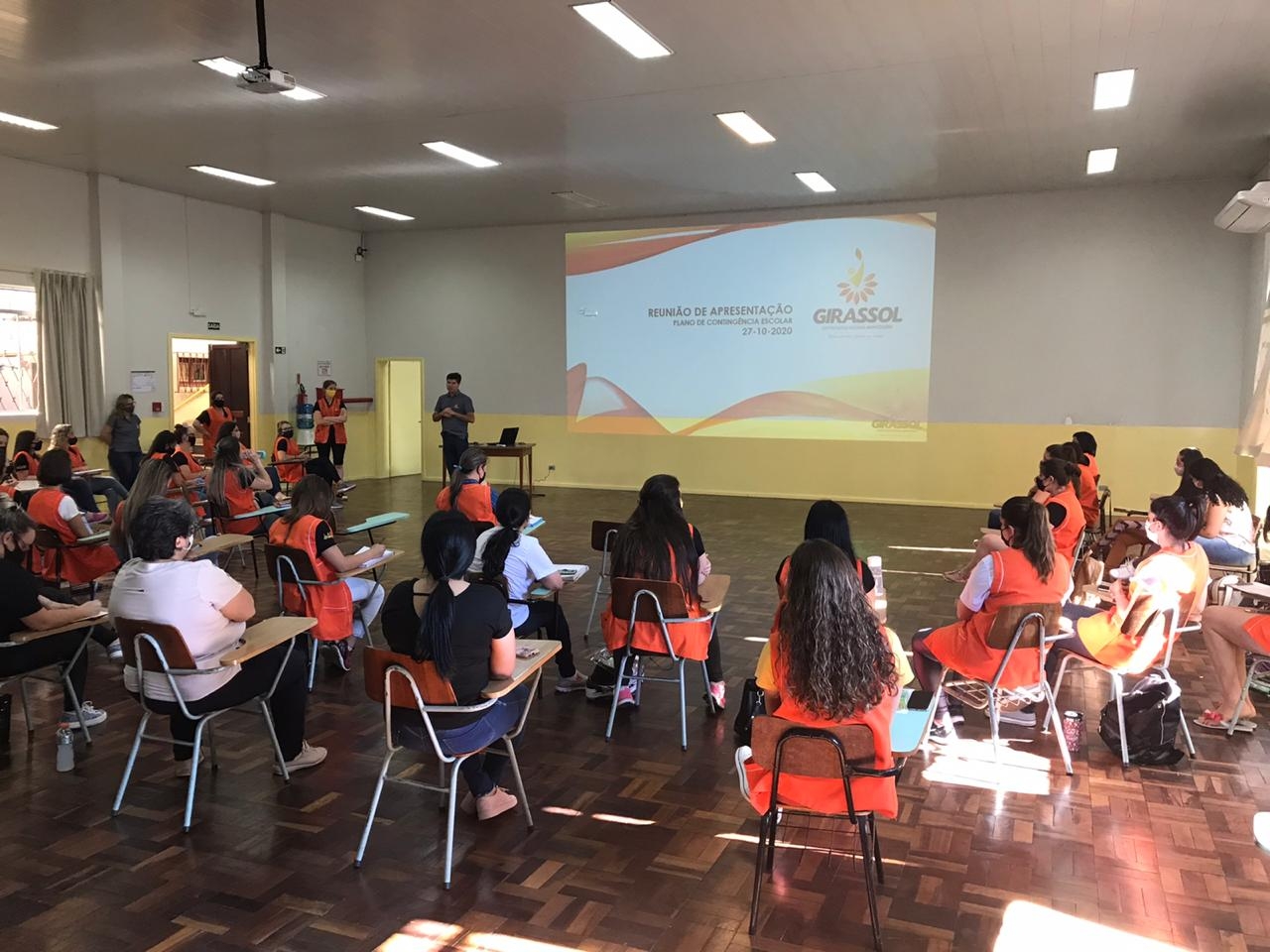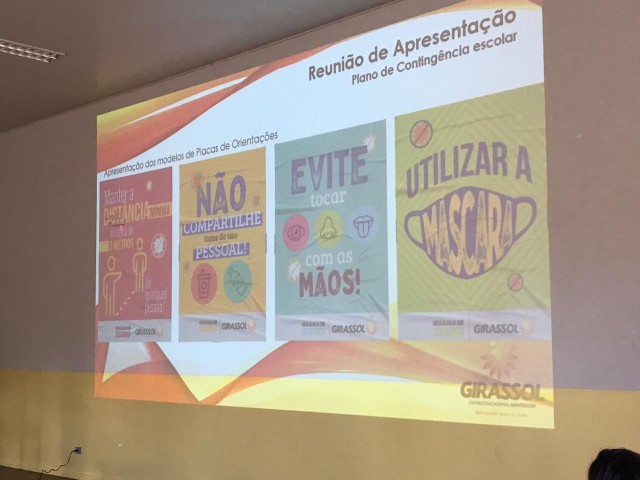 Como parte do Plano de Retomada das Atividades Presenciais, a direção da Escola Girassol proporcionou à sua equipe de colaboradores na última terça-feira (27) um treinamento presencial, onde foi apresentado o Plano de Contingência Escolar. O objetivo deste encontro teve como propósito apresentar e principalmente capacitar a equipe de acordo com as ações do Plano de Contingência Escolar, e desta forma prepará-las para o retorno das aulas presenciais. Durante o treinamento foram levantadas questões sobre a sinalização dos ambientes da escola, segurança, higienização e os cuidados que serão necessários na prevenção ao COVID-19.