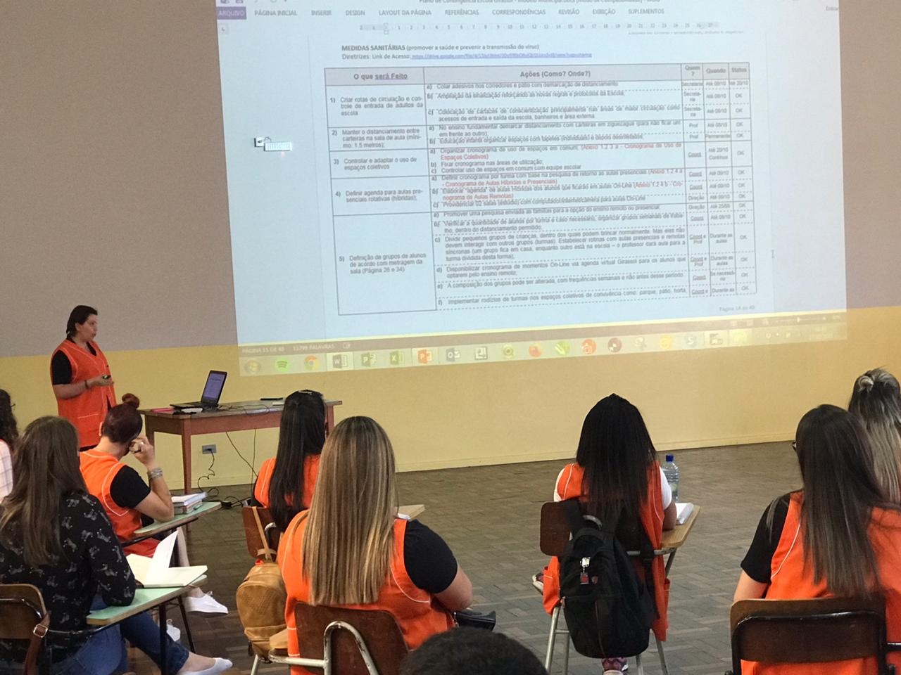 Direção da Escola Girassol promove capacitação da equipe para retomada das aulas presenciais.