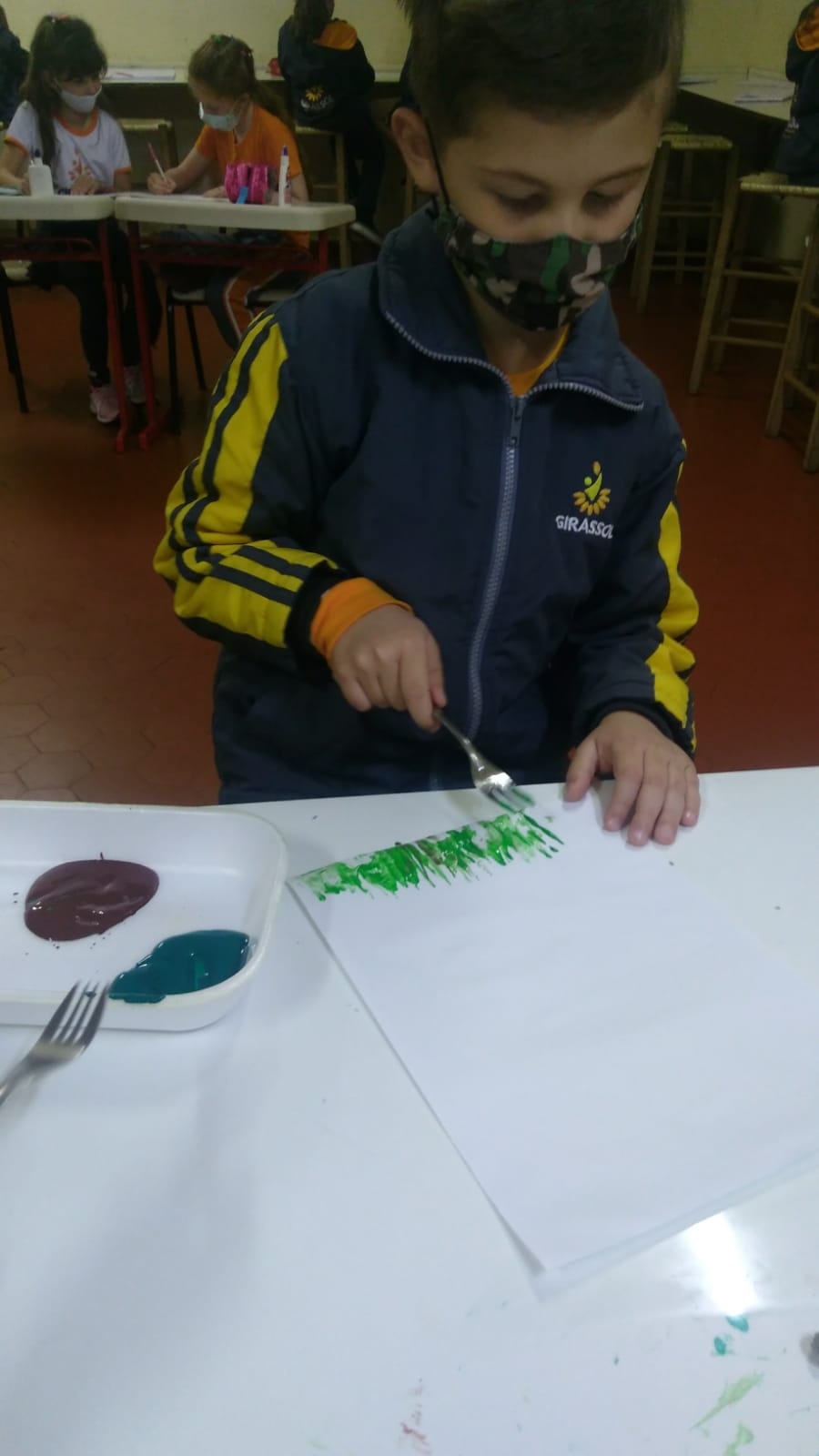 A importância e a riqueza da arte vêm exatamente da sua capacidade de reunir todas as dimensões humanas - a emotiva, a racional, a mística, a corporal. O tipo de experiência que a arte é capaz de proporcionar é único, e não pode ser substituído por nenhuma outra área do conhecimento humano. Na turma do 1º e 2°ano do periodo matutino a professora Luciana trabalhou a arte utilizando uma técnica muito interessante, com talheres, dentro do planejamento das aulas de artes da professora Cremice.