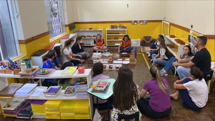 Com o objetivo de aproximar os pais das atividades realizadas no dia-a-dia de seus filhos, bem como da Rotina Montessori e dos materiais utilizados, a Escola Girassol proporcionou a Roda de Conversa entre pais e professores, sendo considerado um momento exclusivo para que os pais possam tirar dúvidas e conhecer melhor a rotina de seus filhos. A Roda de Conversa tem como finalidade trocar experiências, comparando situações diárias, buscando compreender diferenças de comportamento entre ambientes como em casa e na escola. Sabemos que as crianças passam muito mais tempo na escola do que em casa, por isso é essencial que os pais sejam informados sobre a rotina diária dos filhos. A Direção e Orientação Pedagógica agradecem a participação das famílias, pois sabem que faz toda a diferença quando a família está alinhada com o trabalho desenvolvido pela escola.