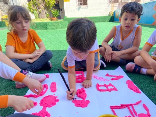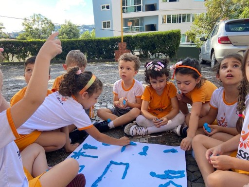 Para Maria Montessori as crianças que recebem uma Educação Cósmica têm uma compreensão mais clara do mundo natural e também delas próprias. Cósmica significa abrangente, holística e com propósitos. Ela acreditava que crianças que recebessem Educação Cósmica na infância estariam mais bem preparadas para uma adolescência como seres confiantes, responsáveis e emocionalmente inteligentes e equilibrados em relações físicas, intelectuais e sociais. Na educação Cósmica as crianças aprendem Ciências, História e Geografia, transitando entre todos os elementos e forças da Natureza. A turma Quero-Quero trabalhou o mapeamento do estacionamento da escola para entender como chegam aos mapas que estão acostumados a ver em sala de aula, com essa atividade realizam o mapeamento primeiramente no tridimensional.