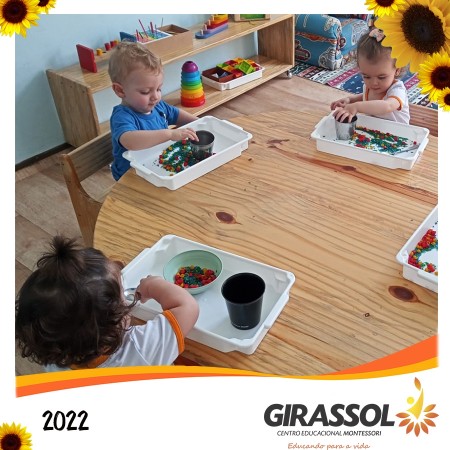 Nós estamos falando de uma ”Escola Montessori“, do Centro Educacional Girassol, onde aplicamos desde 1990 o sistema educacional criado por Maria Montessori.