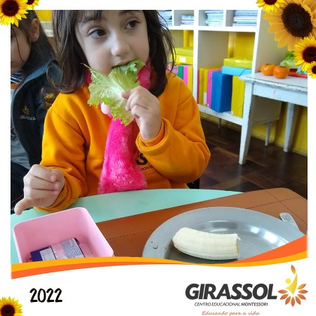 Nas aulas de Educação Ambiental que fazem parte do Currículo Montessoriano na Educação Infantil nossas professoras se utilizam de estratégias que possam sempre estimular o paladar assim como o conhecimento pelo meio ambiente. Nesta aula a professora da Turma Rouxinol levou nossos pequenos para colherem na horta da escola alface para degustarem em sala. Os alunos então escreveram o nome da planta em letra cursiva, treinando a linguagem.