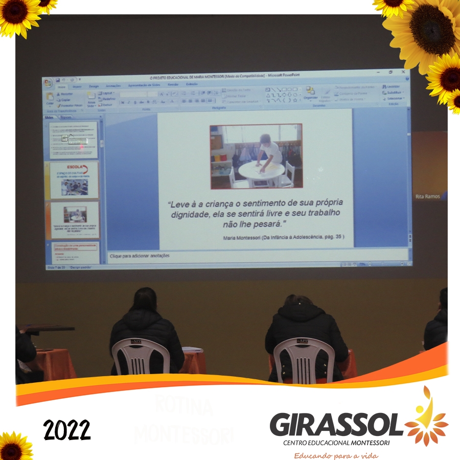 Nós estamos falando de uma ”Escola Montessori“, do Centro Educacional Girassol, onde aplicamos desde 1990 o sistema educacional criado por Maria Montessori.