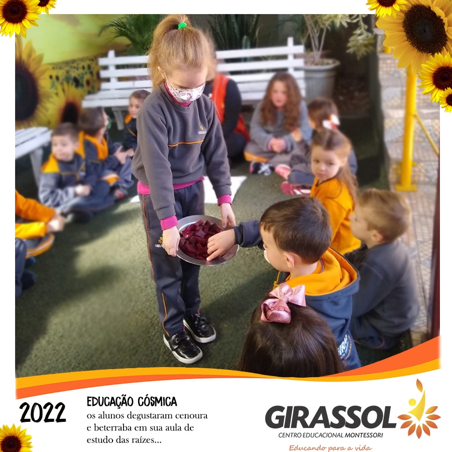 Nós estamos falando de uma ”Escola Montessori“, do Centro Educacional Girassol, onde aplicamos desde 1990 o sistema educacional criado por Maria Montessori.
